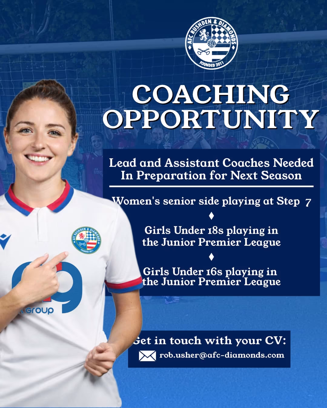 AFC Rushden & Diamonds are looking for Lead and Assistant Coaches in preparation for the upcoming 2026-27 season.