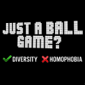 The logo is that of the “Just a Ball Game?” which amongst its aims are to raise awareness about equality and diversity, combat discrimination and homophobia in football/sport.
