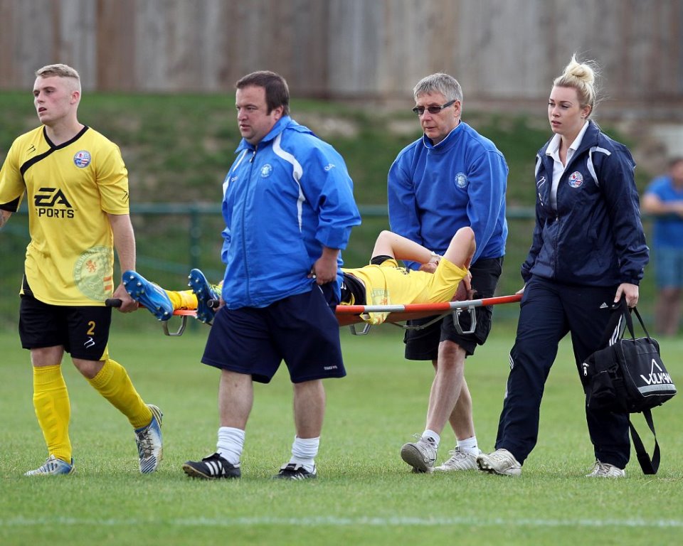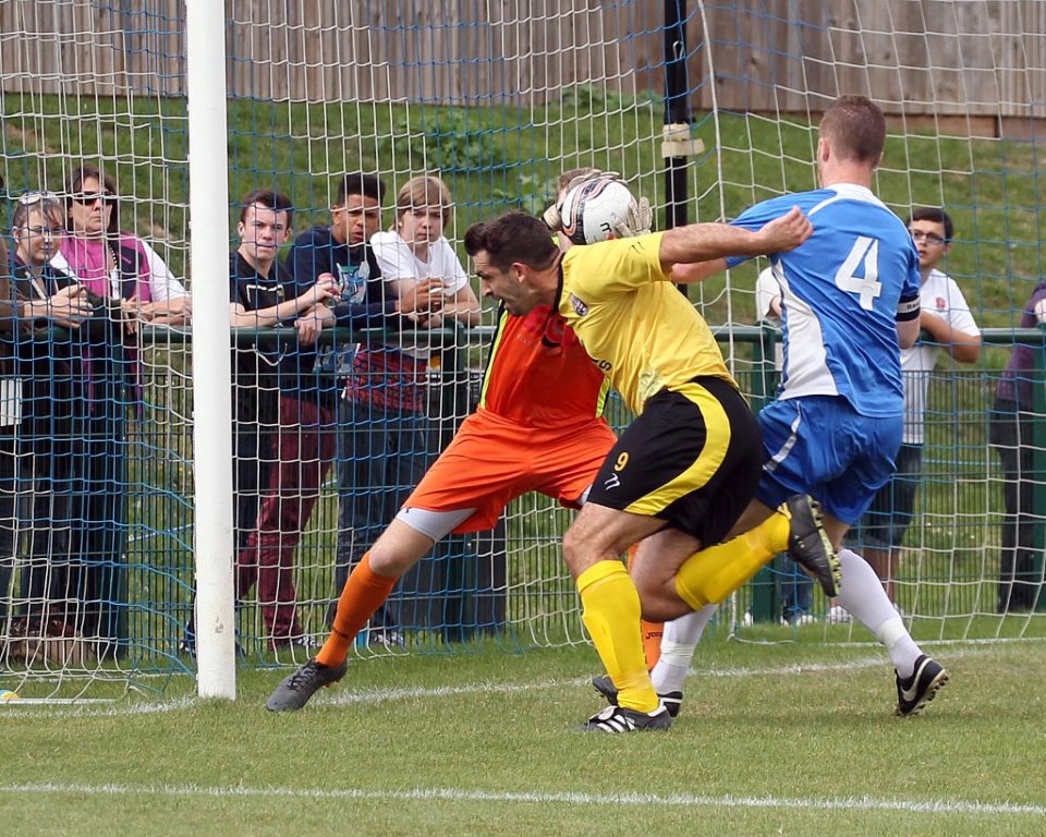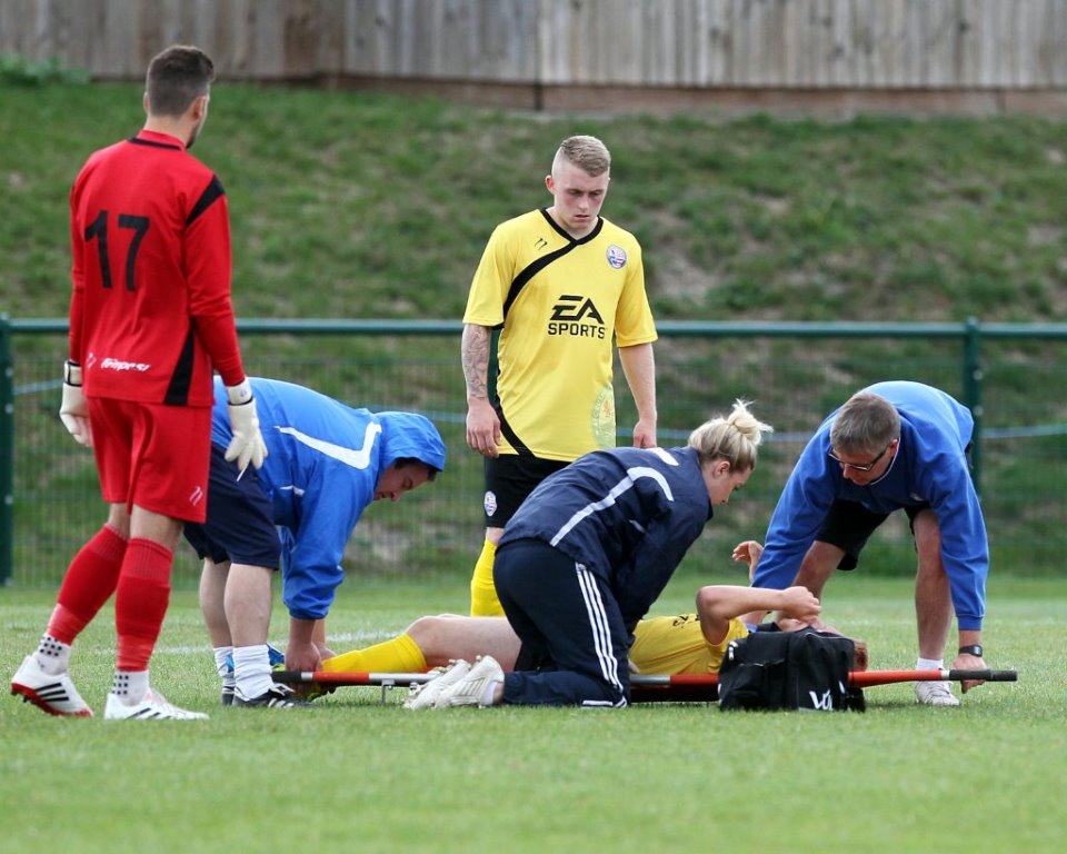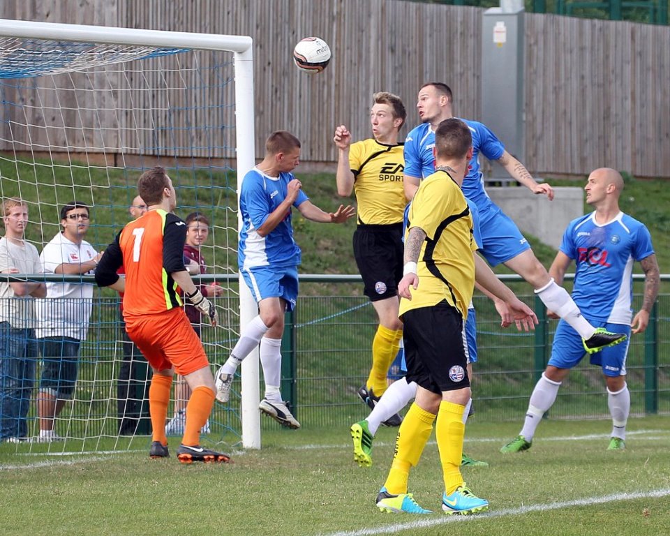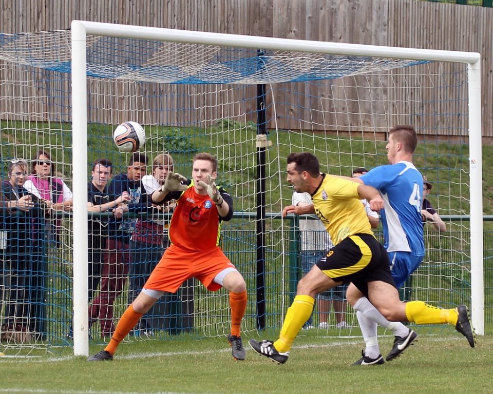 If the first half had been fairly even, with attractive football from both sides, it was the Diamonds who dominated the second period. Matt Gearing had an early chance after good work from Dunkley and Taylor, but saw his shot blocked. That was to be Gearing’s last contribution as he was stretchered off after falling awkwardly when challenging for the ball. Fazel Koriya took his place on the left, and the Diamonds immediately made a move down that side, with Russ Dunkley being awarded a free-kick after an unfair challenge. Koriya took the kick from near the left touchline, and it was straight on the head of Russ Dunkley whose neat back header looped into the net for a deserved equaliser.