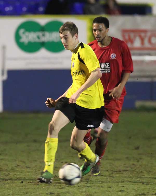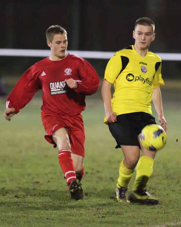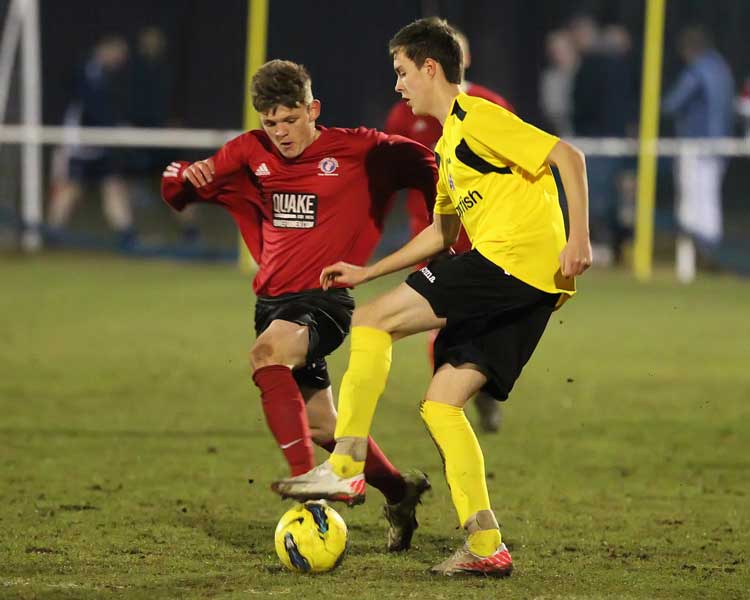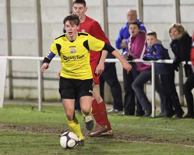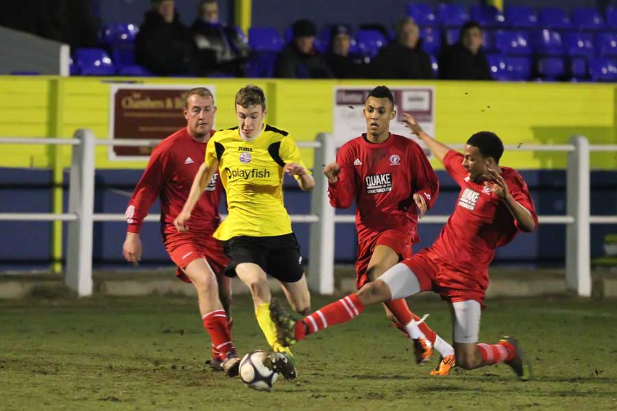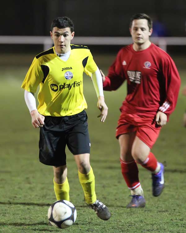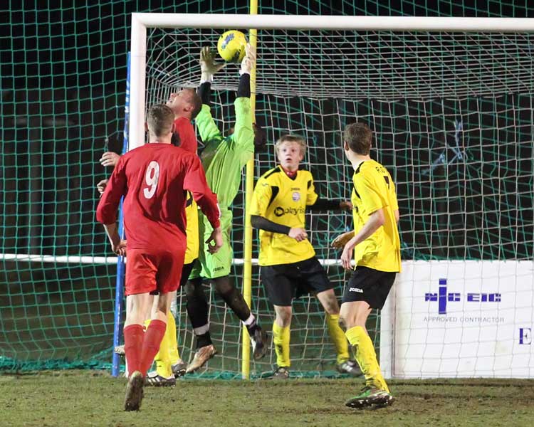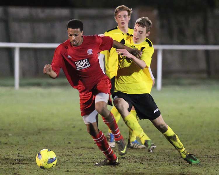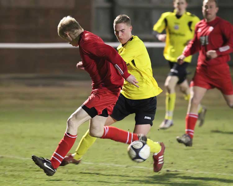 James Harrison had been the Diamonds’ stand out player in the opening stages, more than holding his own against the far more experienced opposition, and often bossing players some 20 years his senior. On 14 minutes he managed to get clear down the right flank and cut inside before hitting a goalbound shot that was blocked just in front of goal. The rebound landed back at the feet of Harrison, but his second effort was just the wrong side of the post.