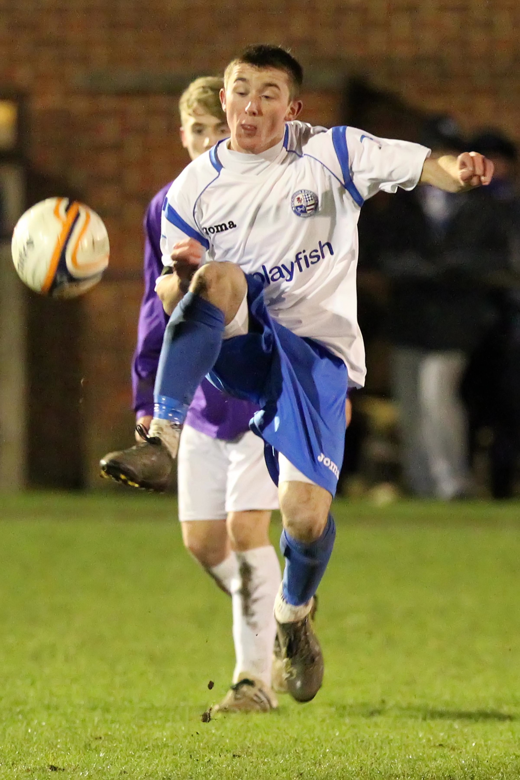 The game then settled down and the following 15 minutes saw both sides struggle to make any impact into the opposition defence. The action sprung back into life on 26 minutes however, as the visitors almost took the lead completely out of the blue. A long ball over the AFC defence saw Batten race from his goal to clear the danger, but he only managed to find Kyle Young some 40 yards from goal. The Daventry striker controlled the ball well before firing in a terrific effort which cleared the Rushden goal by inches, with Batten well beaten. The Diamonds responded immediately with Blake Helsdown sprinting clear down the left flank before pulling the ball back to Thomas whose shot on the turn was unfortunately too close to Quinn, and the Daventry stopper made a comfortable save.