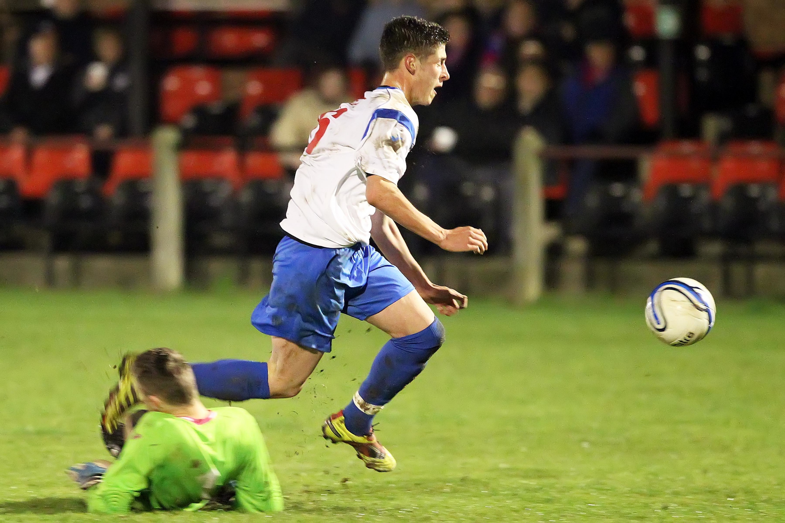 Two minutes later though, the visiting side took the lead, and manager Mark Starmer would have been very disappointed in the manor of the goal. Ashley Meeks won back possession for Rushden but then gave the ball away cheaply with an attempted crossfield pass. An FCV striker ran at the Diamonds’ defence, beating two players far too easily before being tripped 25 yards from goal. Mohamud Korane stepped up and hit a powerful strike through the wall and into the bottom corner.