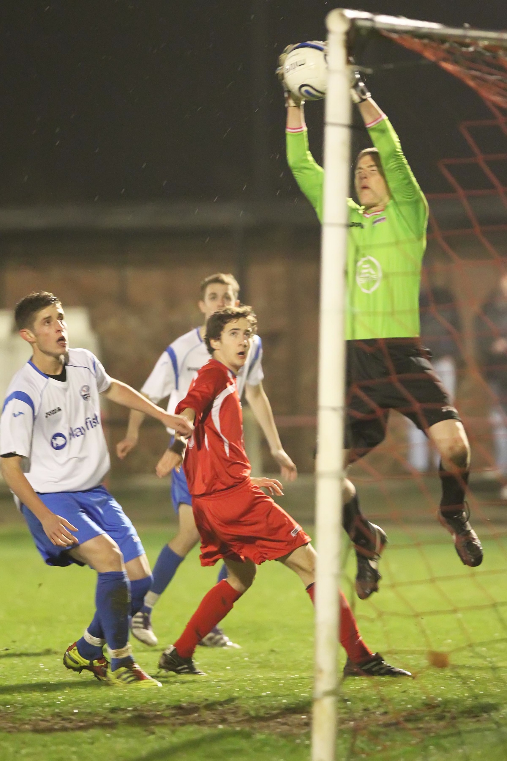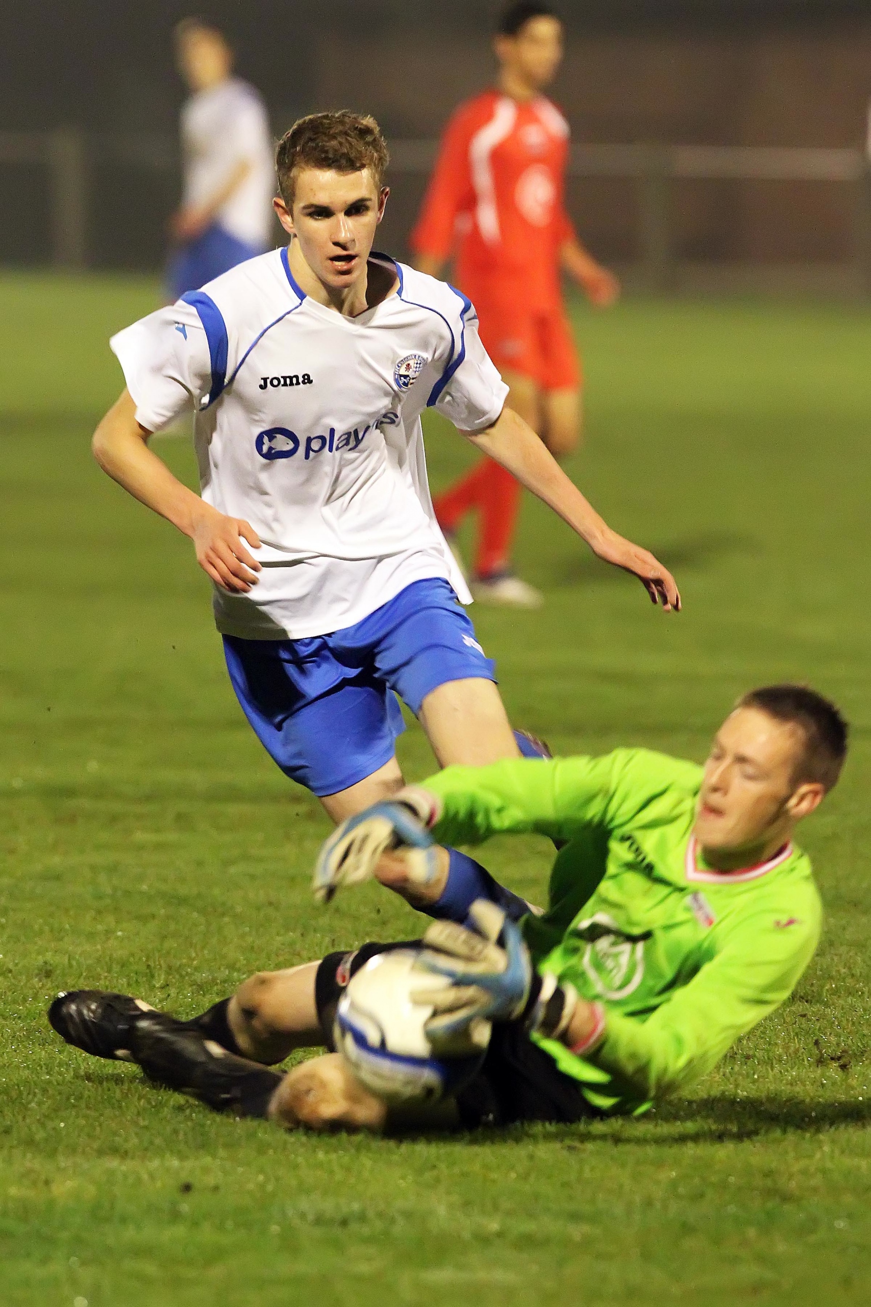 The new look front three of Jeron Thompson, James Harrison and Mason Thomas seemed to have a good understanding right from the off. Harrison fed Thomas after 5 minutes, with the latter skipping past two defenders before being fouled just outside the FCV penalty area. Thomas got up to take the resulting free kick and fired a powerful shot past the wall which was spilt by FCV ‘keeper Ryan Young, but gathered at the second attempt just ahead of the onrushing Harrison. A minute later Conor Bell burst forward from midfield and hit a good effort from 20 yards, but he was denied by Ryan Young who did well to hold onto the ball.