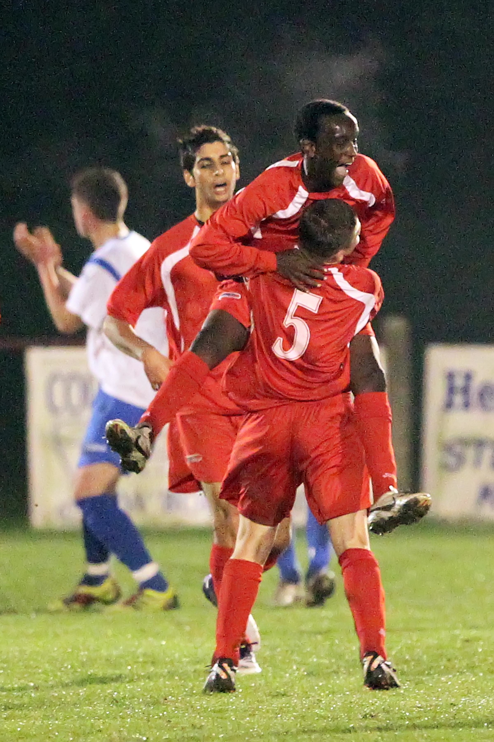The visitors enjoyed some good spells of possession and were confident in playing the ball out from the back, but struggled to find a way past the solid AFC defence. The Diamonds looked much more threatening going forward, and had gilt edged chance on 11 minutes, when Zaak Moon’s 35 yard free kick found the head of Harrison, but his header was glanced narrowly wide of the post.