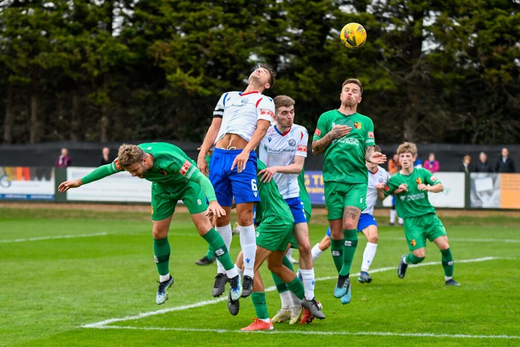 Diamonds had a similar chance just after the half-hour mark. Following a cross from Casey that was deflected behind, Shamsi’s inswinging delivery found Collard at the far post. The defender had already come up with important headers against Needham Market and Hitchin earlier this season, but he couldn’t make it third time lucky as his header flew wide of the post.