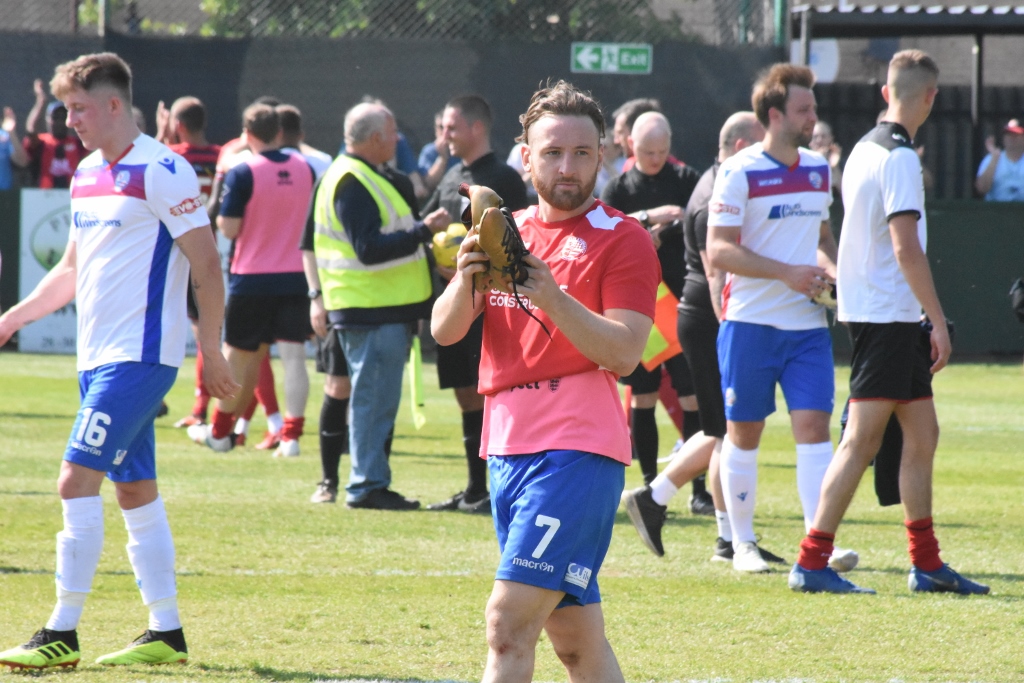 Before the game began at the early kick-off time of 1pm, the Supporters Player of the Season Award was announced. Zack Reynolds came in third place, Alex Collard in second, and Tom Lorraine was announced as the winner. The striker’s 20 goals in all competitions have been a crucial aspect of the successful first campaign at this level but his overall work-rate, his general link-up play and his ability to fit in at the higher standard of football has endeared him even more to the Diamonds fans.