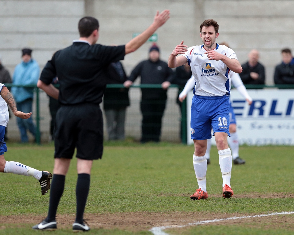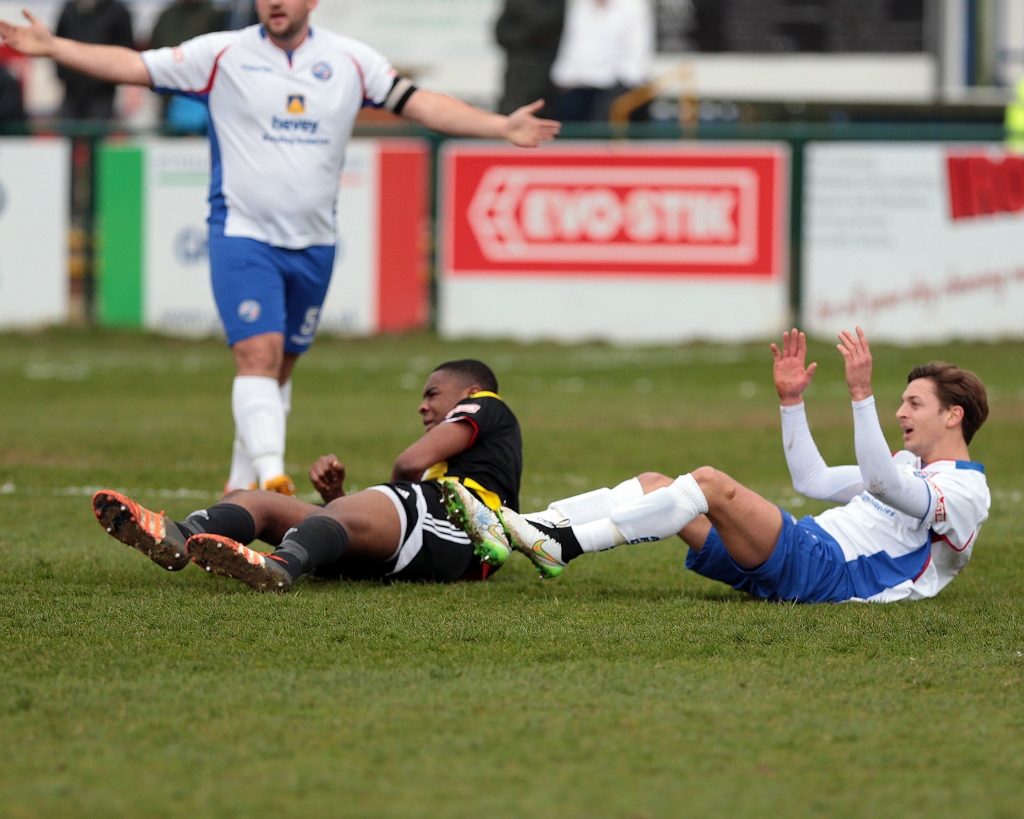 A few minutes later the Diamonds final break of the game saw the impressive Connor Kennedy win the ball as he was fouled, and get the ball into the path of Elliot Sandy who appeared to be breaking towards the area, but this time the referee decided to stop play and award the free kick.