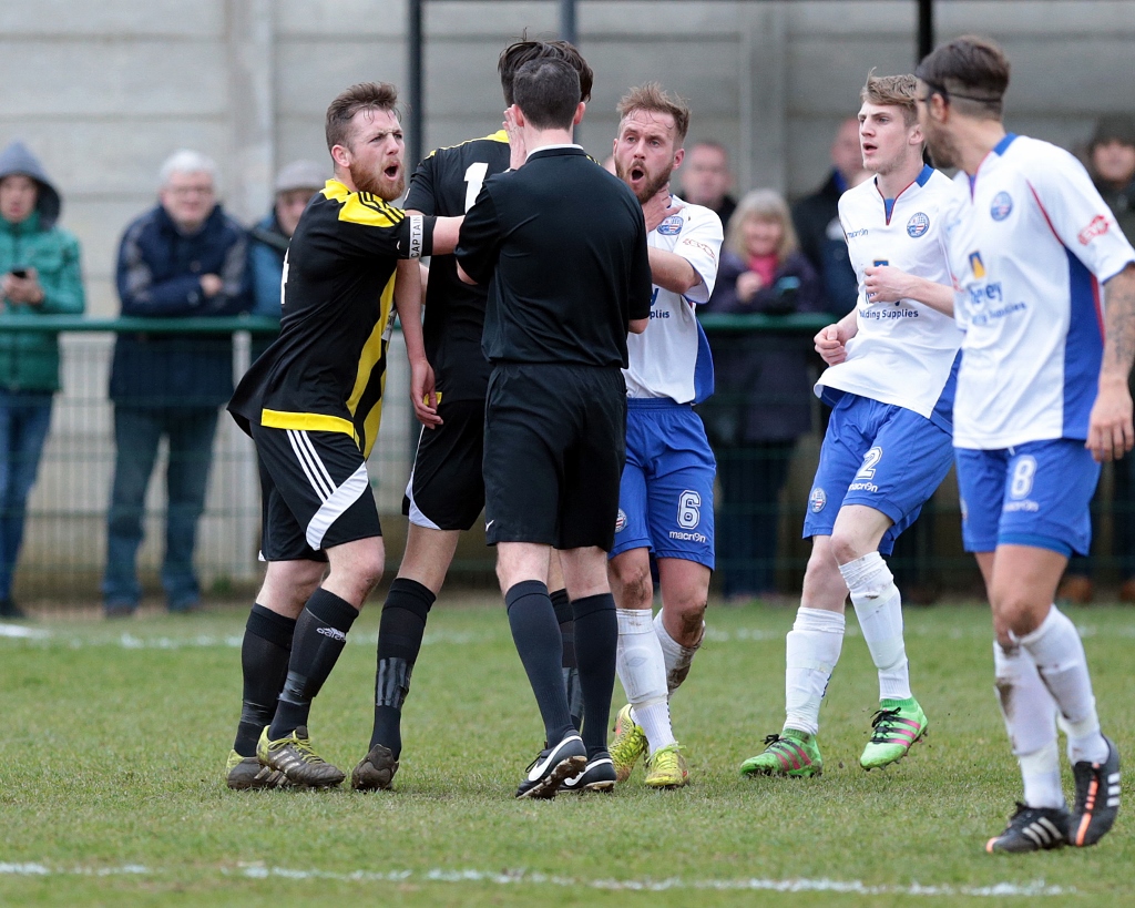 With just a few minutes left the Diamonds increased the tempo, and looked to have earned a free kick in a dangerous position. Referee Postin looked like he was considering whether to play advantage, but before he had waved his arms to do so the ball had broken into the area with substitute Robbie Parsons in pursuit. Although there was clear contact with a defender as the ball ran away the referee decided to give the visitors a free kick and book Parsons for diving. Perhaps a penalty might have been harsh, but it seemed unfortunate the referee did not consider the original free kick offence.