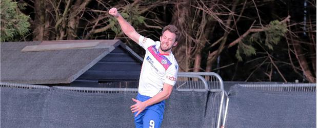 The time ticked past the half-hour mark and, aside from a Reynolds through-ball that almost released Lorraine through on goal only for Street to run out and clear, the action was still slightly limited and largely even between the two sides. Another few minutes of midfield skirmishes and nullified attacks occurred, but in the next piece of action Diamonds took the lead. A King’s Lynn defender cleared the ball away down by the corner flag in their left-back area, but it went straight to Joe Curtis who cleverly headed it forward into the path of Tom Lorraine. There were some appeals for offside against the striker, but he had shown awareness to get himself onside with the defender who initially cleared the ball. He controlled the ball, ran into the area whilst strongly holding off a covering away man and confidently slotted a left-footed shot past Street into the back of the net. It was the striker’s 20th goal of the season in all competitions, 15 of which have been at Hayden Road, and his fourth goal in less than one and a half games after his hat-trick on Tuesday night.