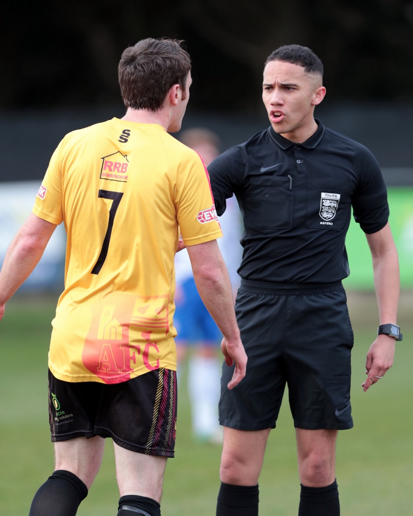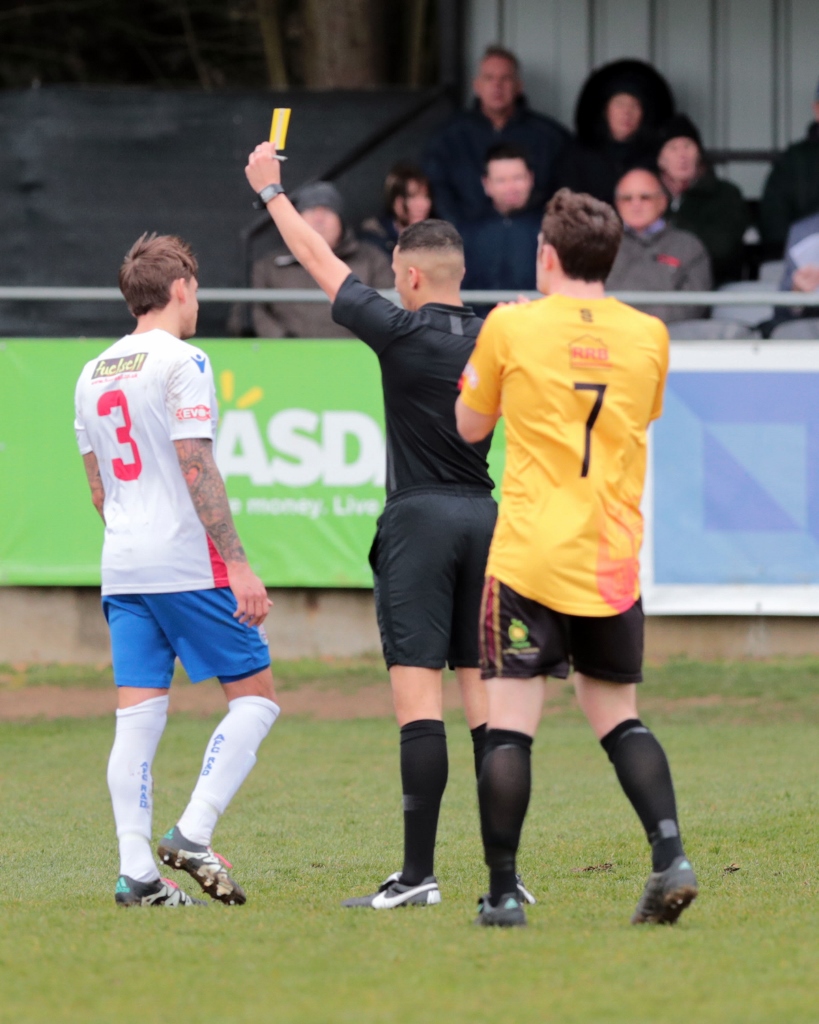 The hosts got off to the best possible start by taking the lead in only the second minute. Tom Lorraine flicked a pass into the path of the onrushing Sam Johnson, and the winger ran into the area before slotting a calm finish past the keeper and into the far corner of the net. It was hoped Diamomds would kick on from there, but instead it was the visitors who responded and had the better of the half. David Bellis had a shot from the edge of the area that was straight at Ben Heath, and then one effort rolled wide before another flashed over the bar. Alvechurch didn’t initially create a huge amount in the way of clear-cut opportunities, but they regularly threatened with pacey attacks and neat link-up play. In the 34th minute a cut-back from Joshua Ezewele found Kieron Cook close to goal, and his sliding effort beat Heath only for Jack Westbrook to make a terrific block on the line before it was cleared away. The dangerous Cook then got away from Jack Ashton on the halfway line before running at Liam Dolman, and he skipped into the area before seeing a low left-footed effort well parried away by Heath down to his left. Cook had another attempt saved by Heath, though the offside flag was raised, and Diamonds were penalised with four yellow cards in the last ten minutes of the half.