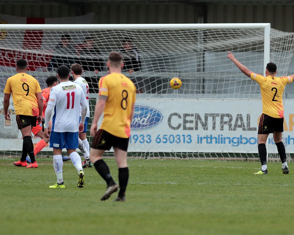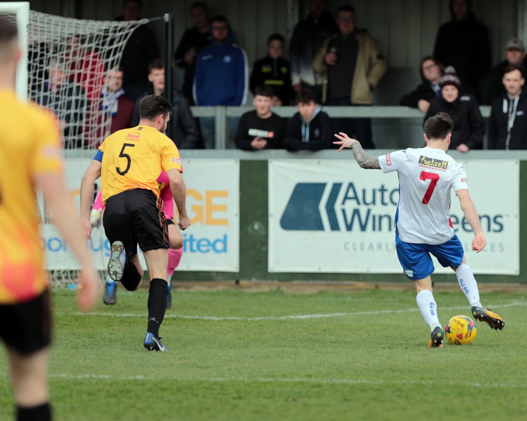 Rushden immediately looked different in their style and play, and they were able to sustain possession for longer periods whilst looking more of a threat with support closer to Lorraine. Less than a minute after the change, they came so close to restoring the lead when Ashton played a long ball into the left channel, and Hicks made a great run to get onto it. He did superbly to cut inside March to face up Crane from an angle, but his sidefooted effort towards the far corner was well read by the keeper who punched the effort away to safety.