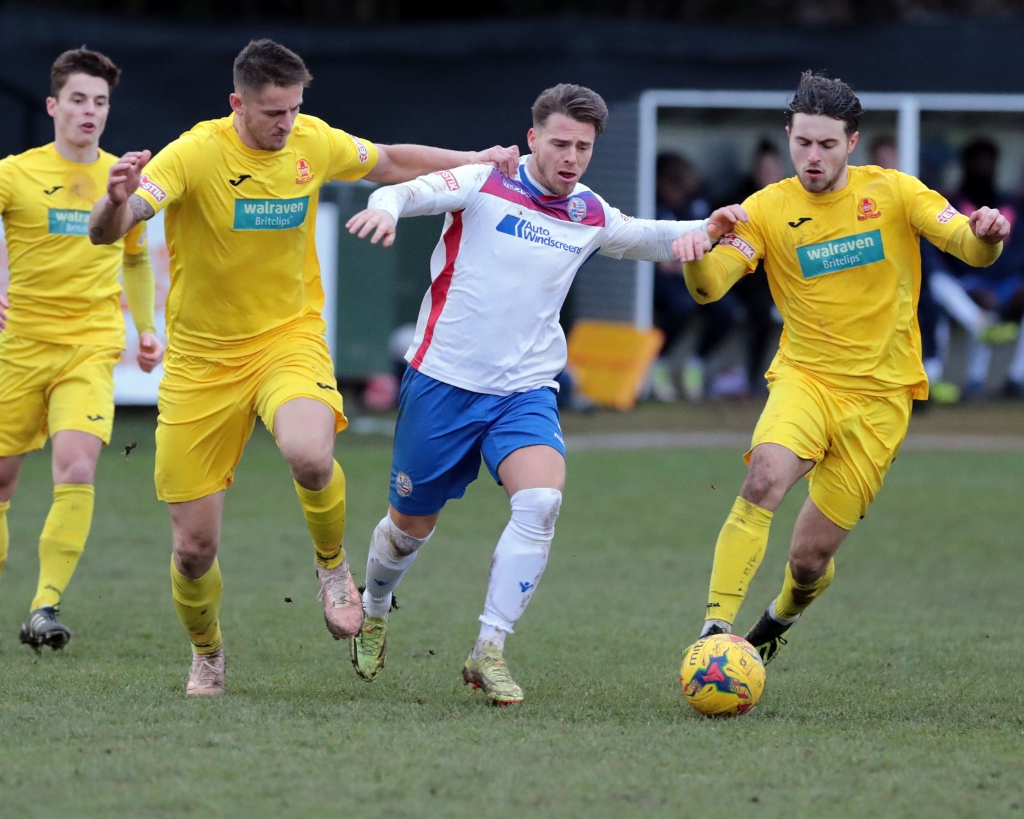 Whether consciously or not, the hosts then began to drop a little deep and began playing more on the counter-attack. This led to Banbury building a sustained period of possession and territory as they probed for an equaliser, and one attack led to Collard making a good block from Rasulo. The attack was kept up, and Brown also made a crucial block from Shamsi before the loose ball ran for Nash whose effort flashed comfortably over the bar.