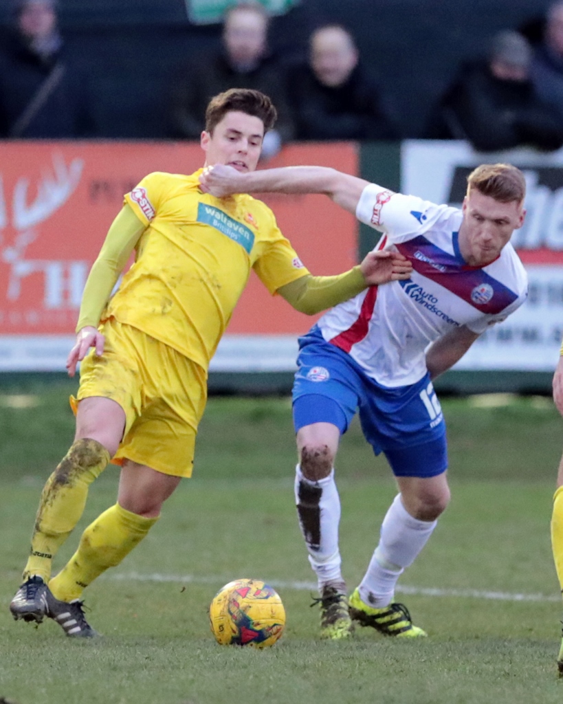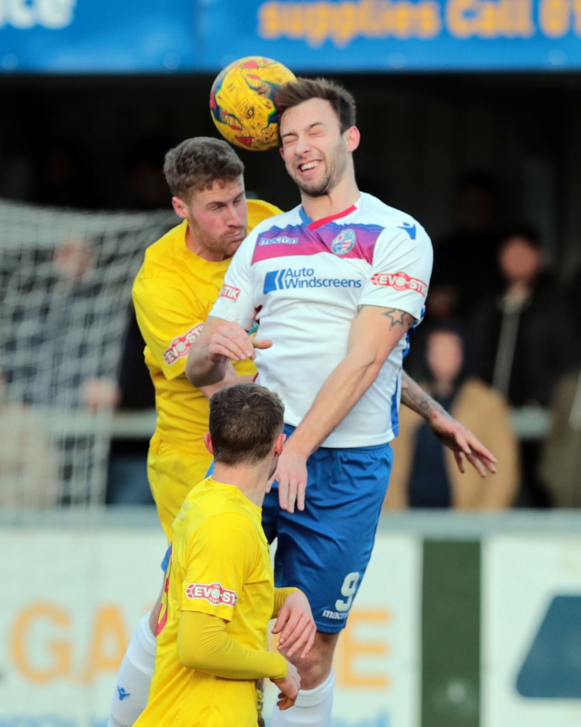From the subsequent set-piece, Diamonds took the lead. Rogers’ inswinging delivery from the right was initially headed away by Charlie Wise, and it fell for George Nash only for his attempted clearance to be charged down by Hicks. It ran back out to Rogers, and his cross towards the far post saw Collard, Henderson and Ricky Johnson challenge for the header. The loose ball dropped for the Diamonds defender to hit an effort towards goal, but it was blocked away. It fell for the lurking Ben Diamond around 12 yards out, and he wasted no time in slamming the loose ball past the despairing dive of Harding and into the back of the net. It was the striker’s ninth goal of the campaign, and his first at Hayden Road since the middle of November.
