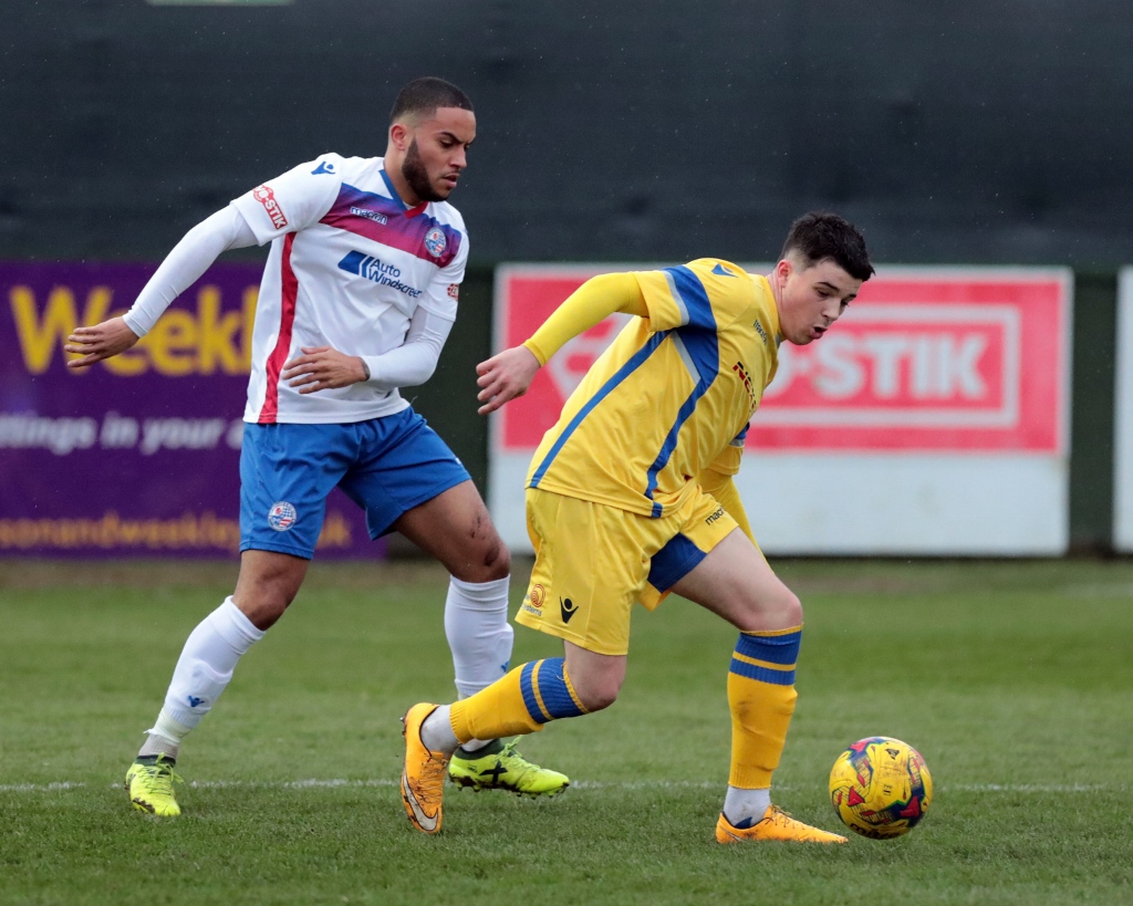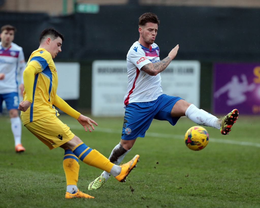 Berry-Hargreaves had won the man of the match award against Hitchin the previous Saturday and had set up the winning goal following a superb run forward, and another run almost created the first goal of this contest. He galloped down the left before playing a low ball into the area that was initially cleared, but only as far as Hopkins. He controlled the clearance and swiftly sorted his feet out before shooting goalwards from just outside the area, but the effort went straight at away keeper William Johnson.