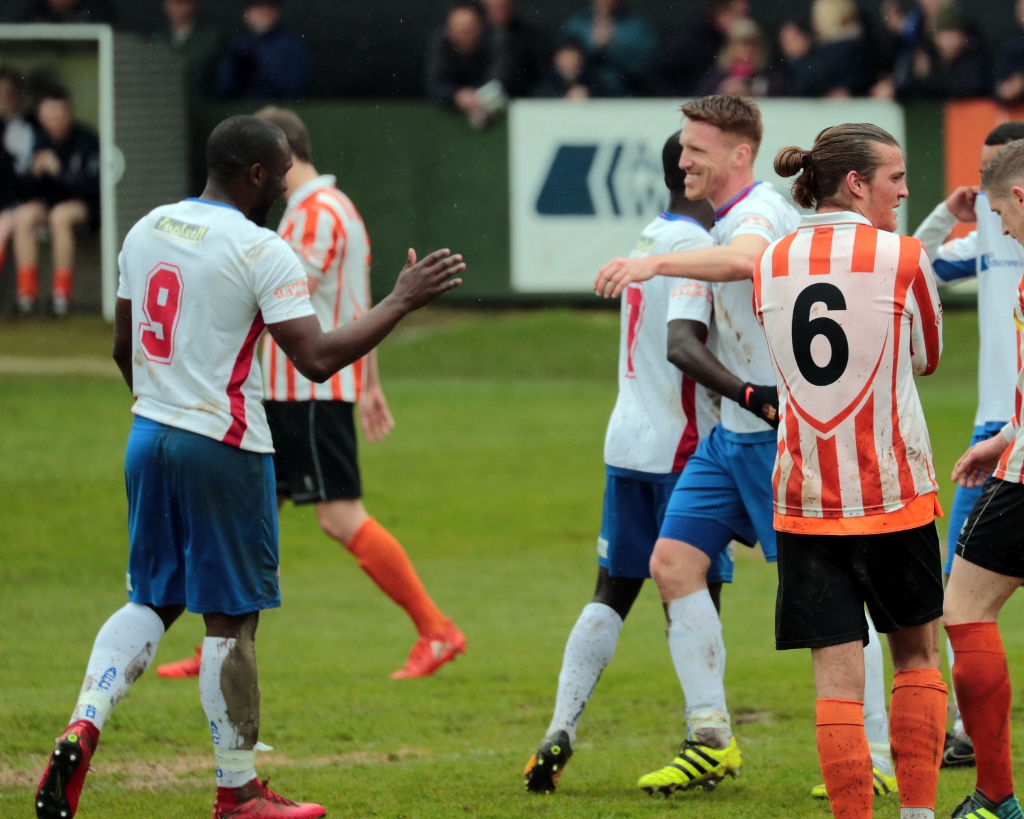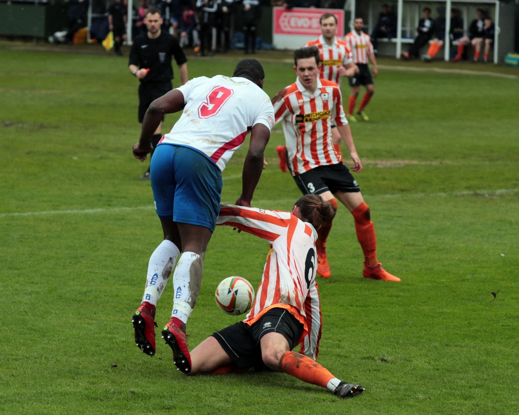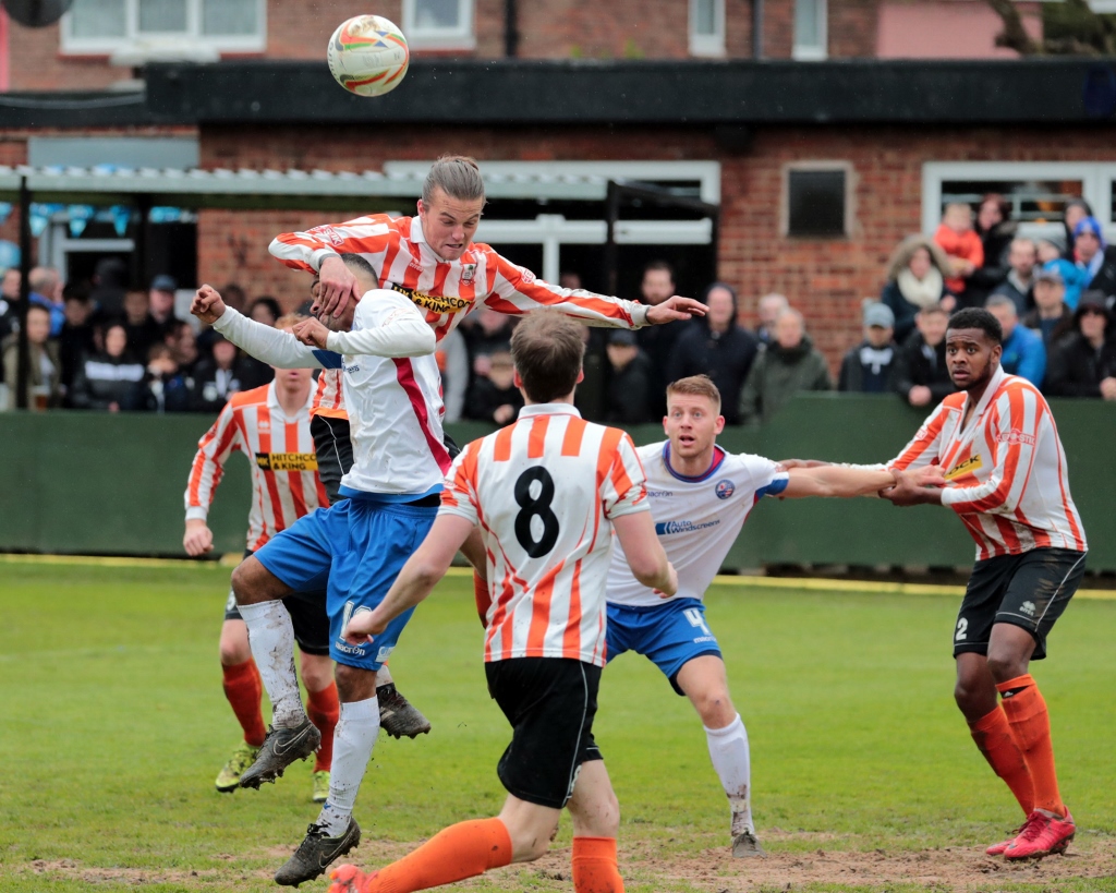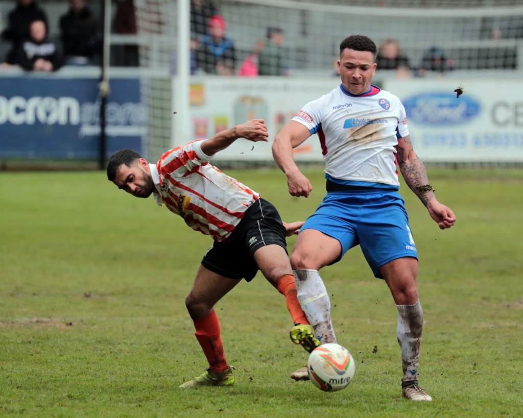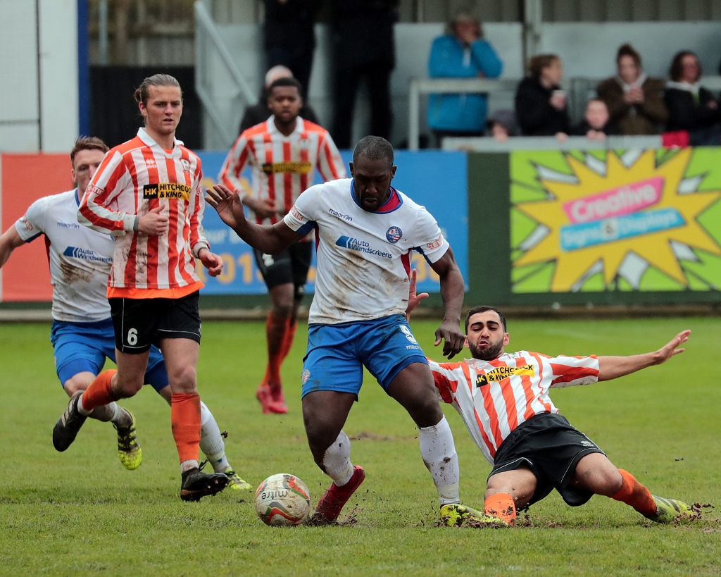 The rest of the half passed without any action of note as midfield skirmishes were aplenty and scrappy and well-fought periods of play were frequent, but Diamonds deserved their advantage as referee Howes signalled the end of the opening half. Marlow and Beaconsfield were still deadlocked in their match, meaning Rushden were top of the table as they made their way to the changing rooms for the interval.