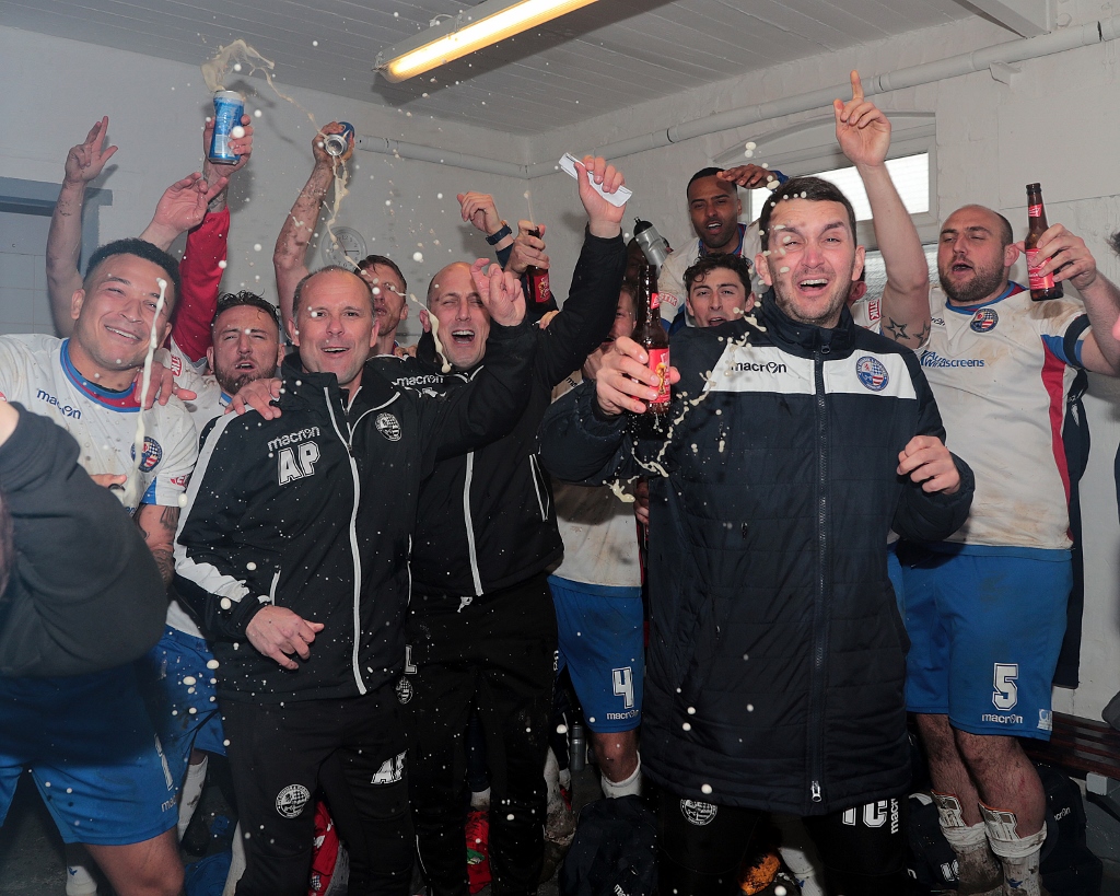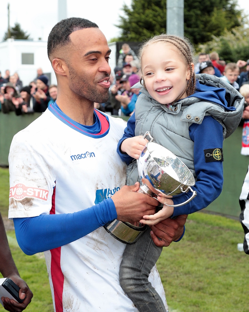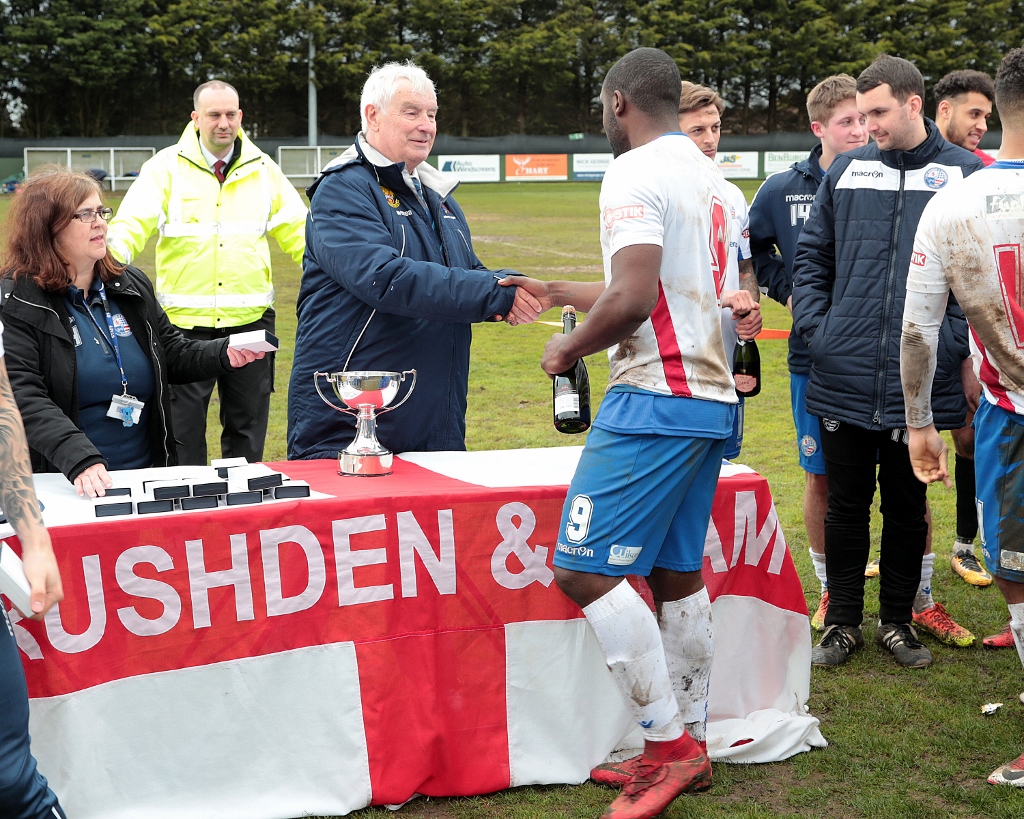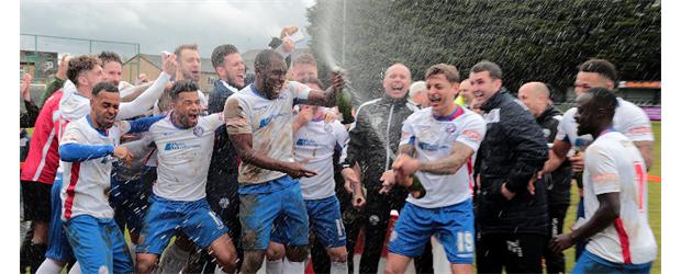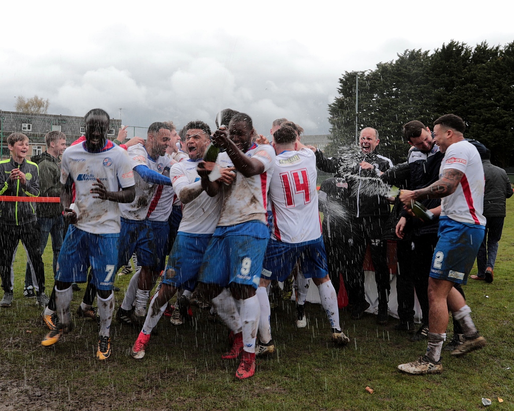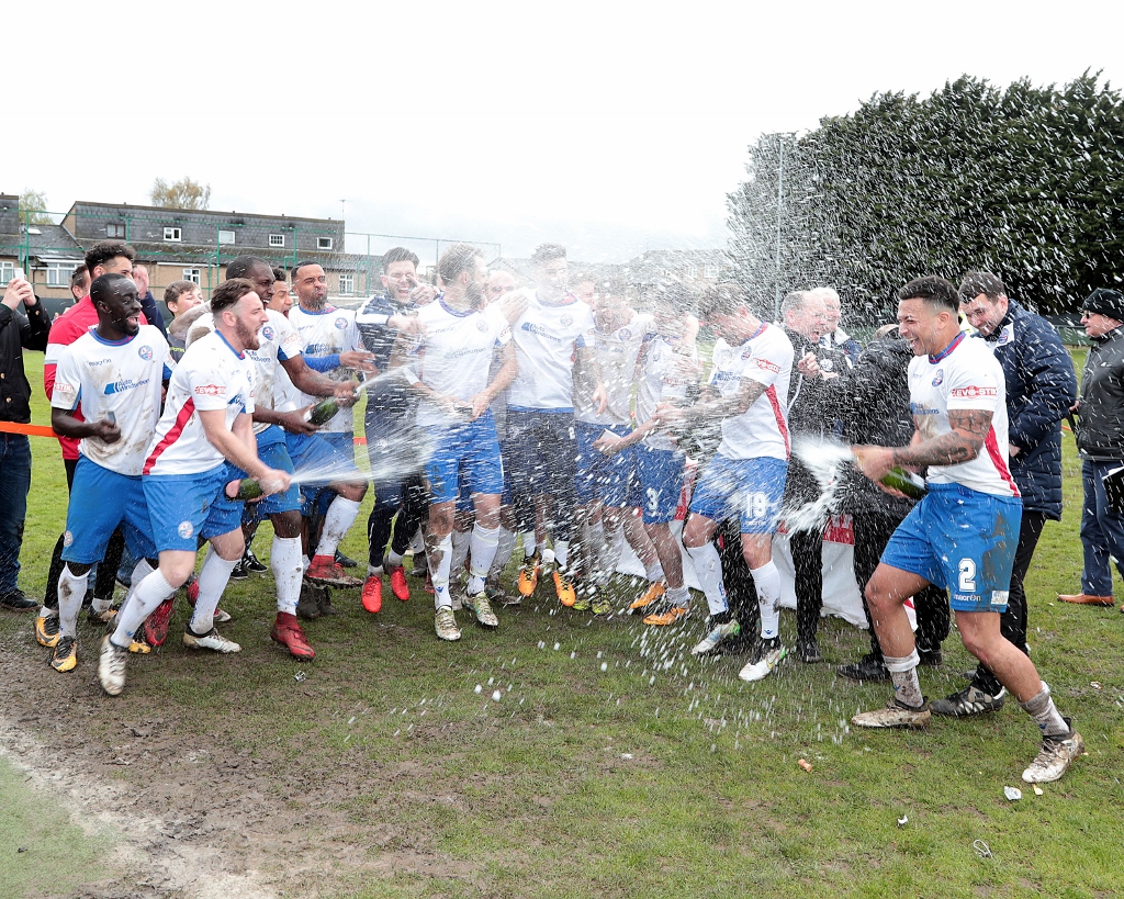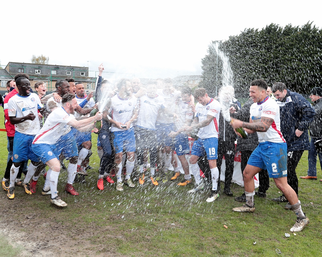 Play had barely got back underway though when Howes signalled the end of the contest, and at this moment Marlow and Beaconsfield were still playing. Shortly afterwards confirmation came through that Beaconsfield had held on for the win and had thus sealed the championship title, but it refused to spoil the Diamonds’ promotion celebrations as they made their way off the pitch before returning to be presented with their medals and befittingly celebrating a superb achievement. They will play at Step Three of non-league football next season for the first time in their short history and, after two consecutive years of play-off heartbreak, made the celebrations even more prominent at having realised their hopes and ambitions at the third time of asking.
