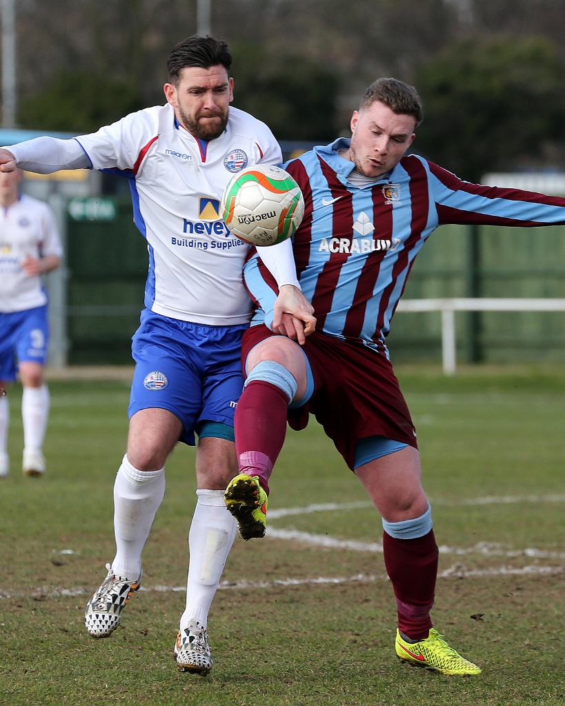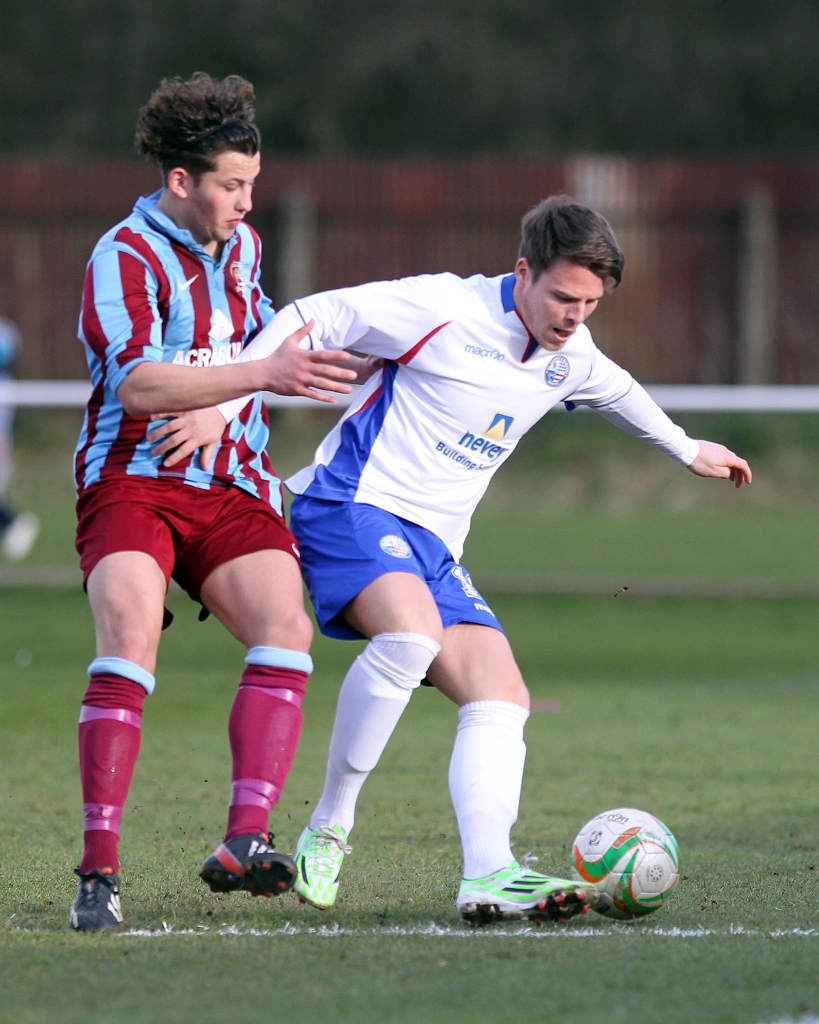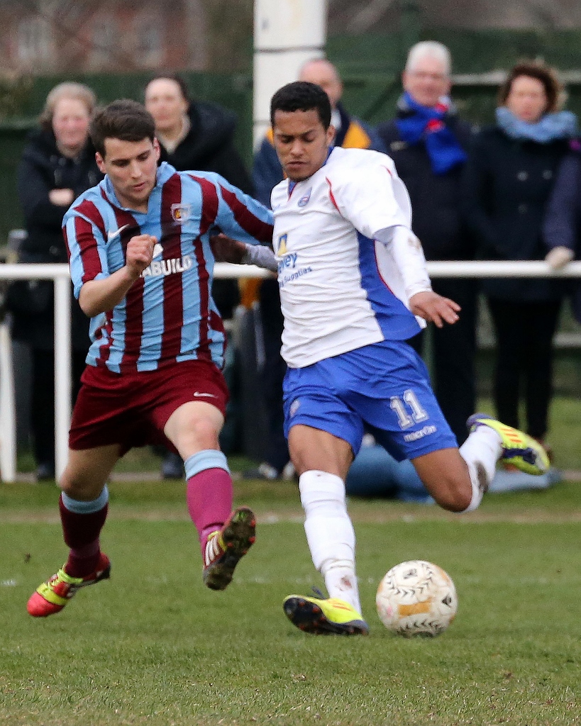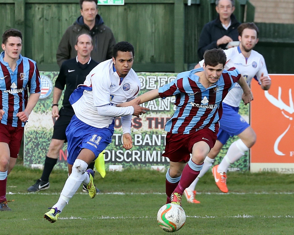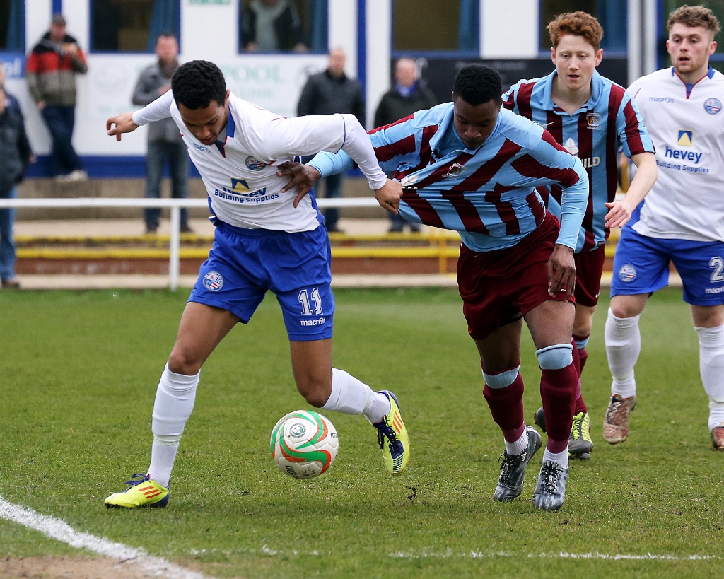 He fired in a series of good crosses one finding Russ Dunkley which the big man couldn’t quite control, and another which just evaded Scott Joseph on the stretch.