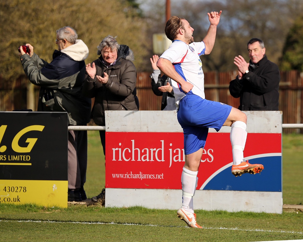 When it looked like the half would end goalless Diamonds came up with the vital breakthrough. A Sam Brown short throw-in this time was collected by Tom Lorraine he exchanged passes with Brad Harris and surged into the box and lashed the ball home from 12 yards, peeling away for his trademark leaping and turning celebration that delighted the home faithful. It was his 16th of the season and 17th for Diamonds and saw his team into half-time with a one goal lead.