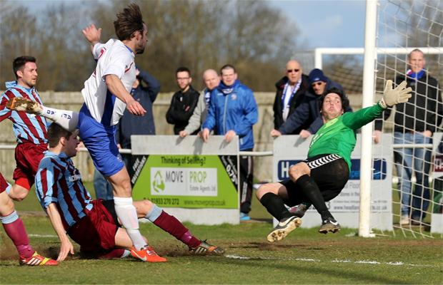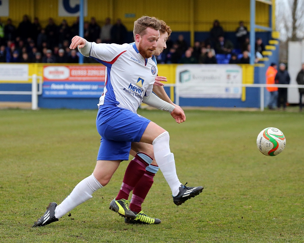 Diamonds pretty much dominated the first half creating plenty of good attacking positions but struggled to create the killer chances against an excellent Deeping defence.  Tommy Berwick, Tom Lorraine, Matt Gearing had Elliot Lamb-Johnson fired in close efforts, while Deeping were dangerous from free-kicks with Levi Wright coming closest with a quick volley that Matt Finlay had to touch wide. The goal that would win the game finally came on 44 as Tom Lorraine lashed in from 10 yards for his 16th of the season. The windy blustery conditions worsened in a low key second half which saw Deeping pressing forward but unable to fashion much in the way of chances. Matt Finlay in the Diamonds goal held every swirling cross and got down well to save Goldson-Williams best chance for Deeping late on. Diamonds held on well to take a vital 3 points in their promotion campaign.