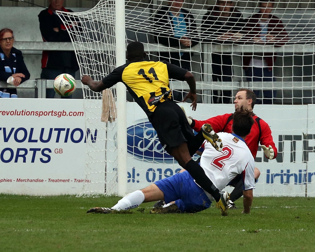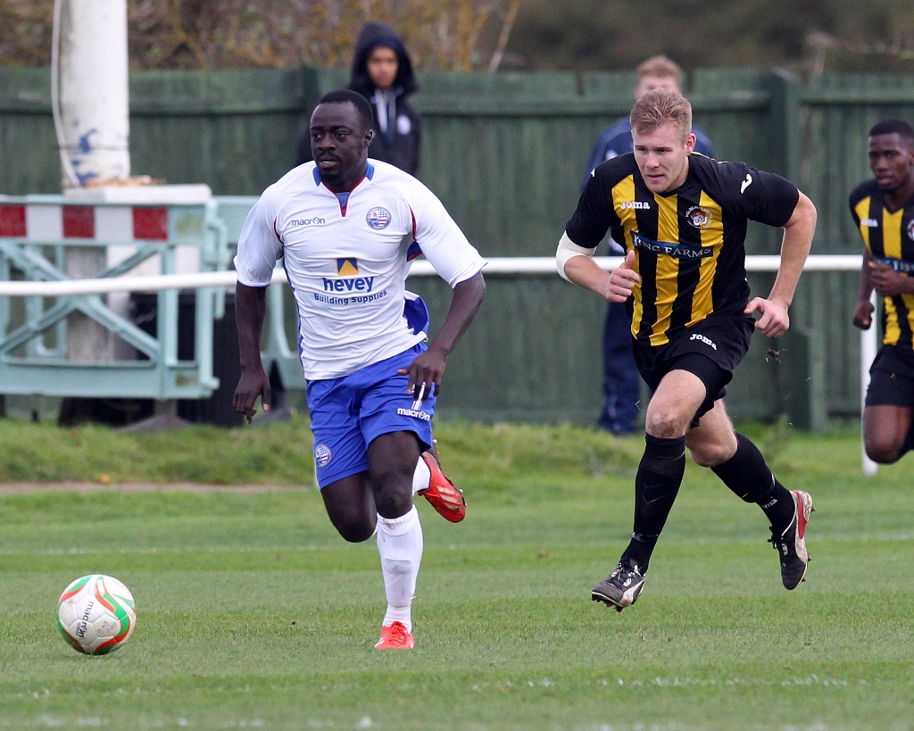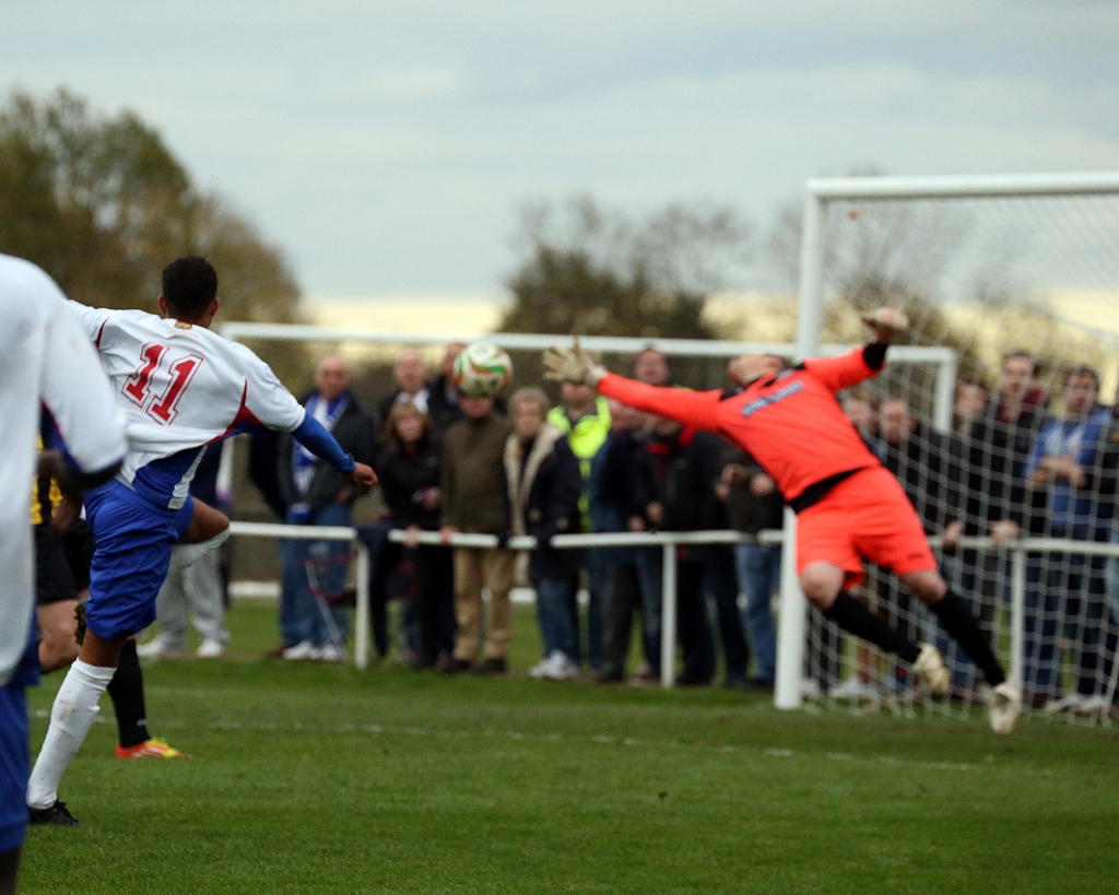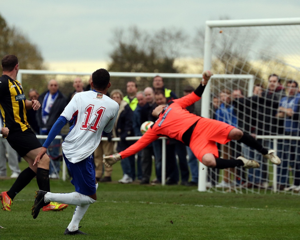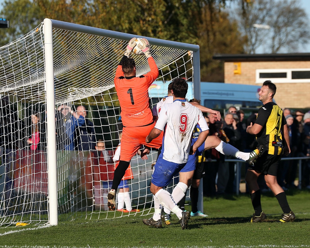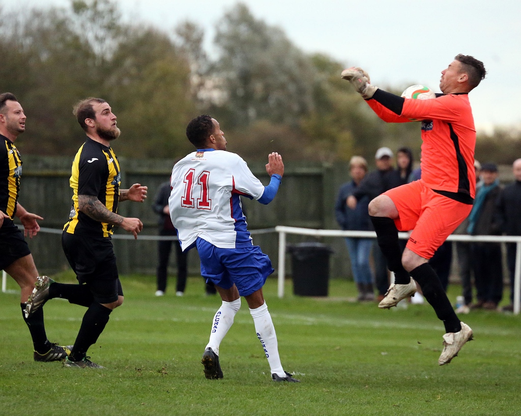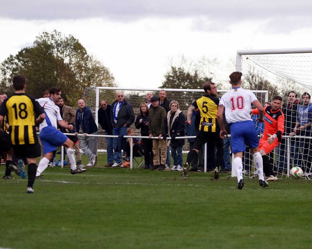 Adam Confue provided Russell Dunkley with the chance to chest down a pass for Fazel Koriya whose first time effort went narrowly wide of the post as both teams looked for a winner. Holbeach almost snatched the game but both Parkinson and keeper Finlay blocked a fearsome shot from Livo Dube.