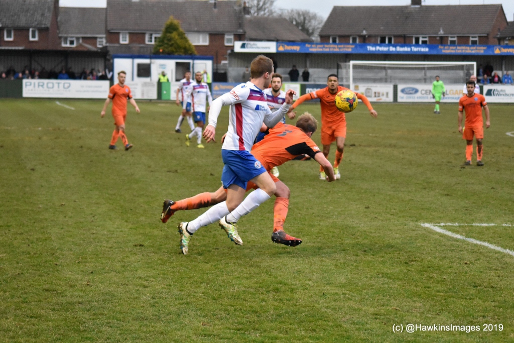 Leiston started the second half with real intent and after a good spell of attacking play got their deserved equaliser on 55 minutes. They had just seen a looped cross fall onto the crossbar before Matthew Rutterford drove into the left hand side of the box and hit a superb curling effort into the far corner past Ben Heath.