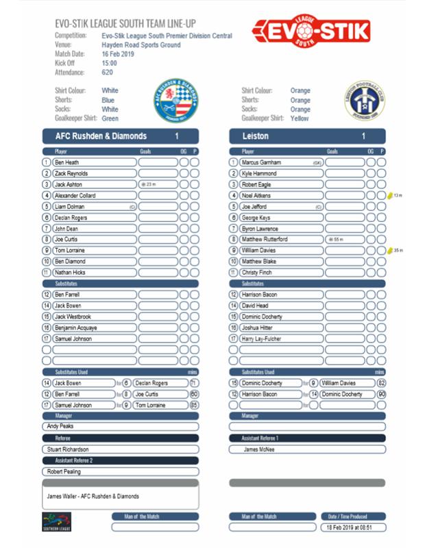 Full-Time: AFC Rushden & Diamonds 1 Leiston 1