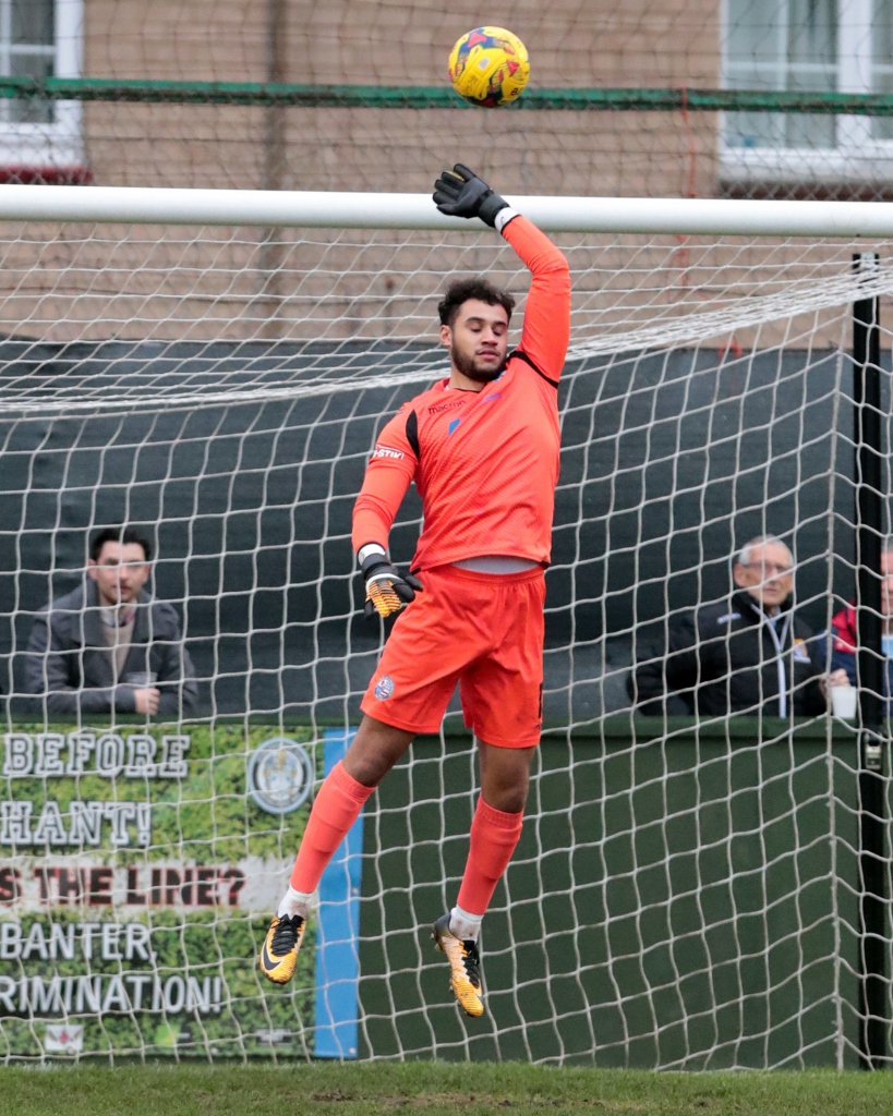 Though Diamonds weren’t creating lots of clear-cut chances and weren’t working Iron too much, they had responded well to Shariff’s miss and were beginning to assert more and more of an authority in the game. The visitors still posed a threat though, and on the half-hour mark a long throw on the left was inadvertently flicked on by a Diamonds head for it to reach defender Ryan Hughes. However, his header goalwards well held low down by Heath. Again Rushden responded, and only a couple of minutes later good link-up play between Tom Lorraine and Albie Hopkins saw the latter cross from the right, and it reached Diamond at the far post. The frontman’s volley was goalbound, but was well blocked away by a covering away defender.