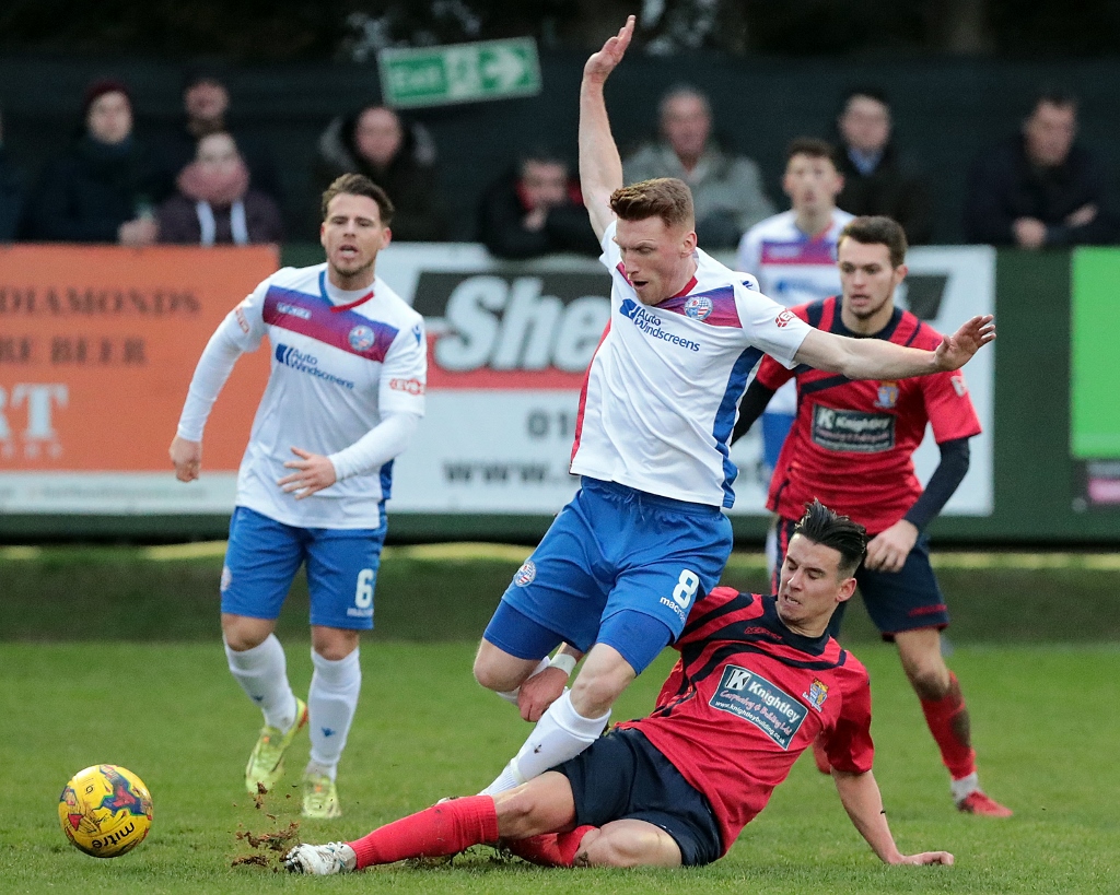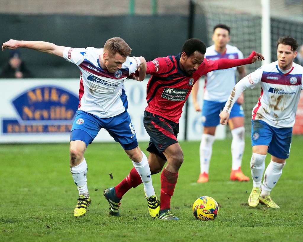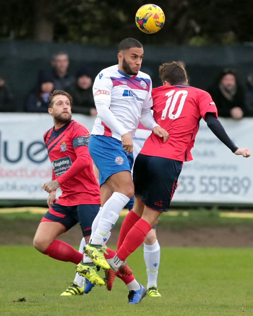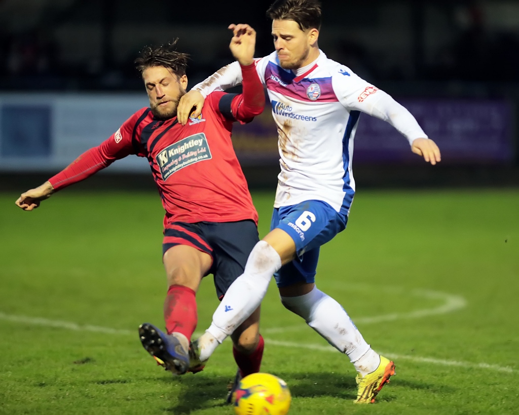 The visitors began brightly and fashioned an opportunity in the very first minute. Left full-back Jordan Norville-Williams latched onto a loose ball and strode forward before unleashing a rising drive from around 30 yards out, and the strike went just over Ben Heath’s crossbar. Aside from that the first ten minutes were relatively quiet as both teams looked to gain a foothold and to assert their authority in the match. Rushden created their first chance in the 12th minute when Declan Rogers curled a cross in from the left towards the back post, and Ben Diamond did well to get up above Norville-Williams only for his header to drift across the box and be cleared away.
