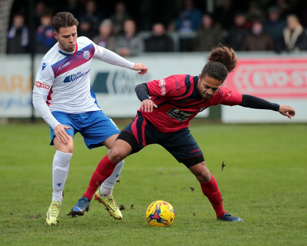Rushden started the half on the front foot as they looked to quickly add a second goal. They won a throw-in on the right, and Brown came across to launch a trademark delivery into the area. It was initially cleared away but it fell for Lorraine to head back into the area, and Blaize Punter skilfully controlled it on his chest before launching an overhead kick that went over the bar. Moments later they were inches away from doubling the lead. Hopkins won a free-kick just under 30 yards out from goal in a central area, and Rogers seized responsibility for the kick. He stepped up and curled an effort up and over the wall but, with the keeper not getting to the attempt, it smacked off the crossbar and back into play. It dropped for Hopkins, but he wasn’t able to fashion space and a shot for himself, and the danger was cleared.