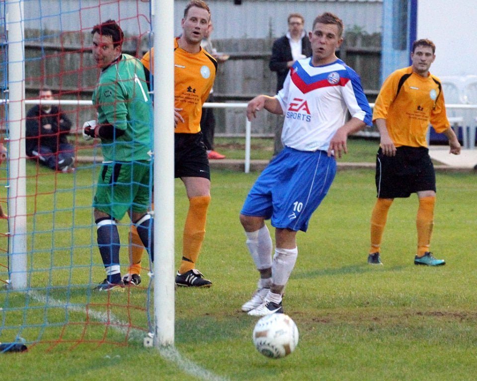 The visitors then started to get their offside trap organised, and it was this that thwarted a couple of excellent looking Diamonds breaks, although quality finishes by Taylor and Morgan once again promised much for the season ahead. Chris Hope made amends for firing over when presented with a good chance by heading clear at the other end during a rare first-half raid by the visitors. Alfie Taylor forced a good save, and Joe Merrill did well when breaking forwards from full-back to almost find Alfie Taylor with a low cross.