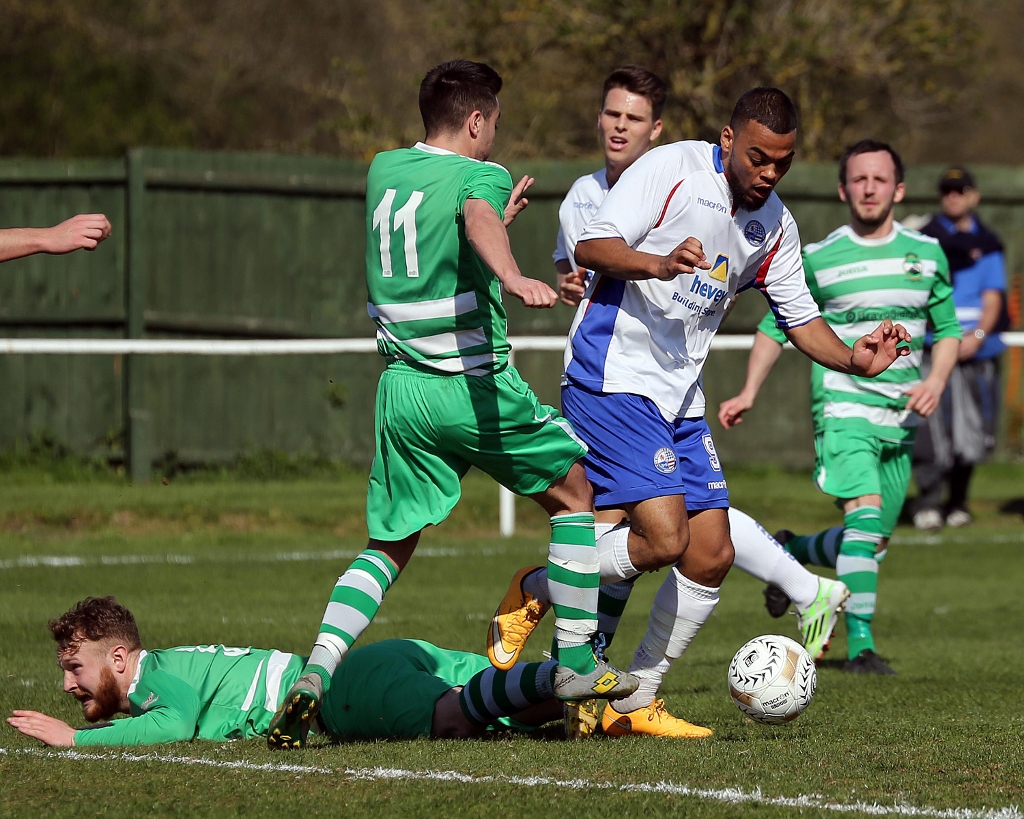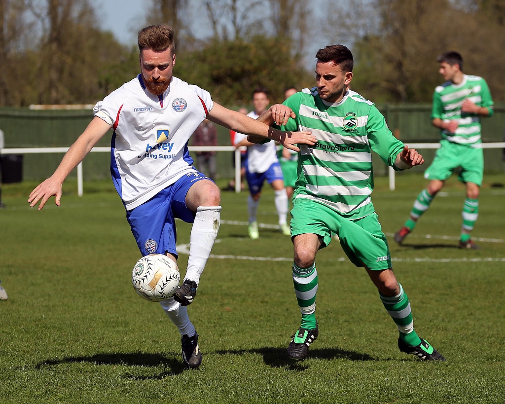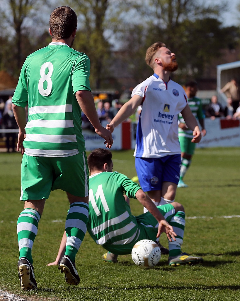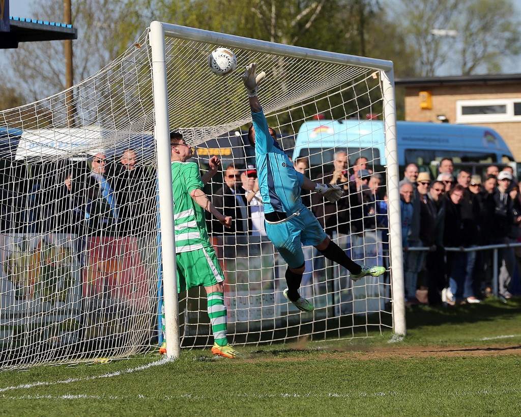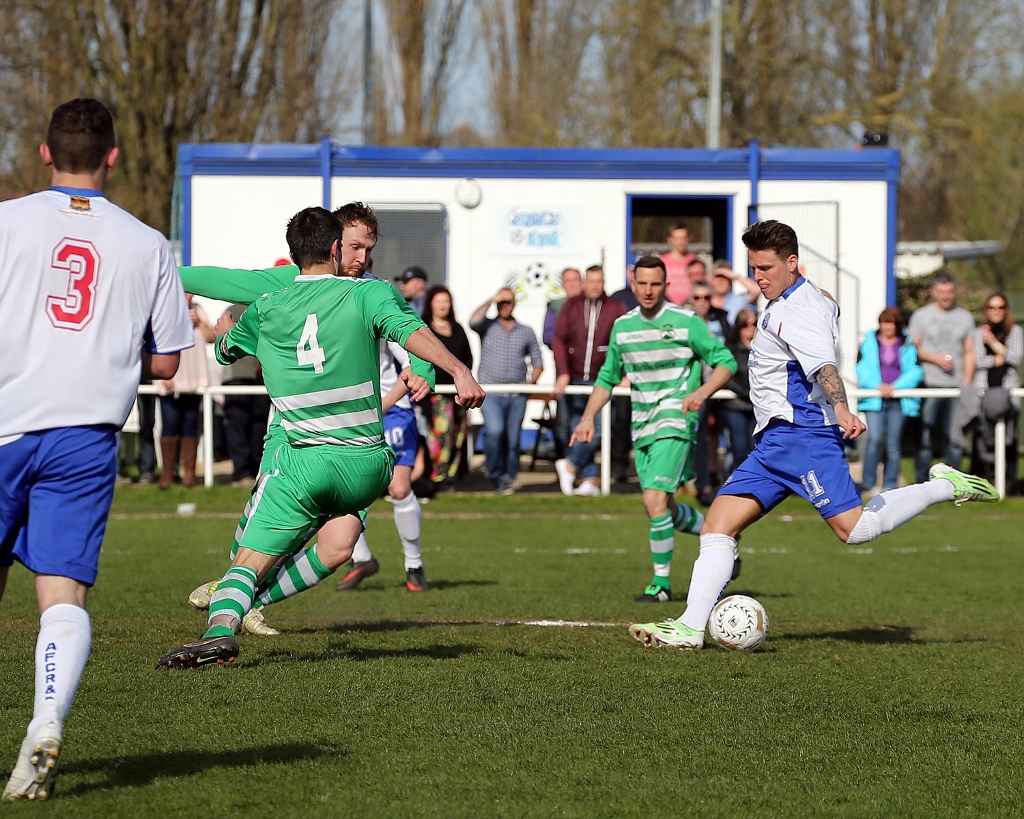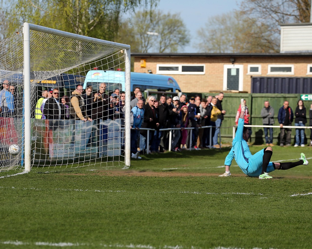 Yet it was the visitors Newport Pagnell who had the opening opportunity of the contest in the third minute when a header downfield bounced over Liam Dolman and allowed Josh Crawley to pick up possession. He knocked the ball over the head of Diamonds full-back Charlie Butt and sprinted towards goal on the left side, but his effort on the bounce was straight into the hands of home goalkeeper Matt Finlay.