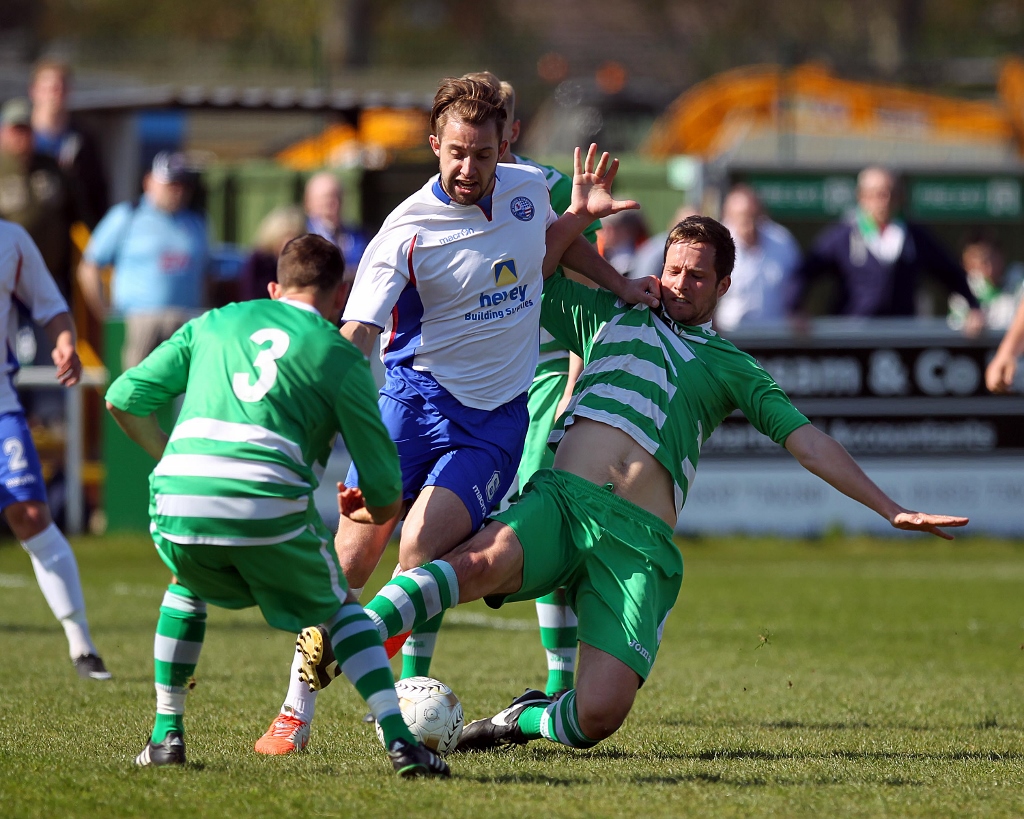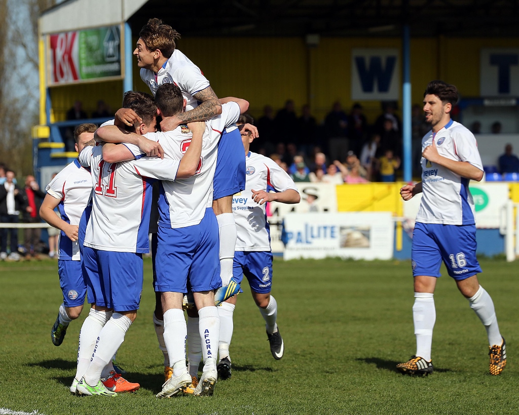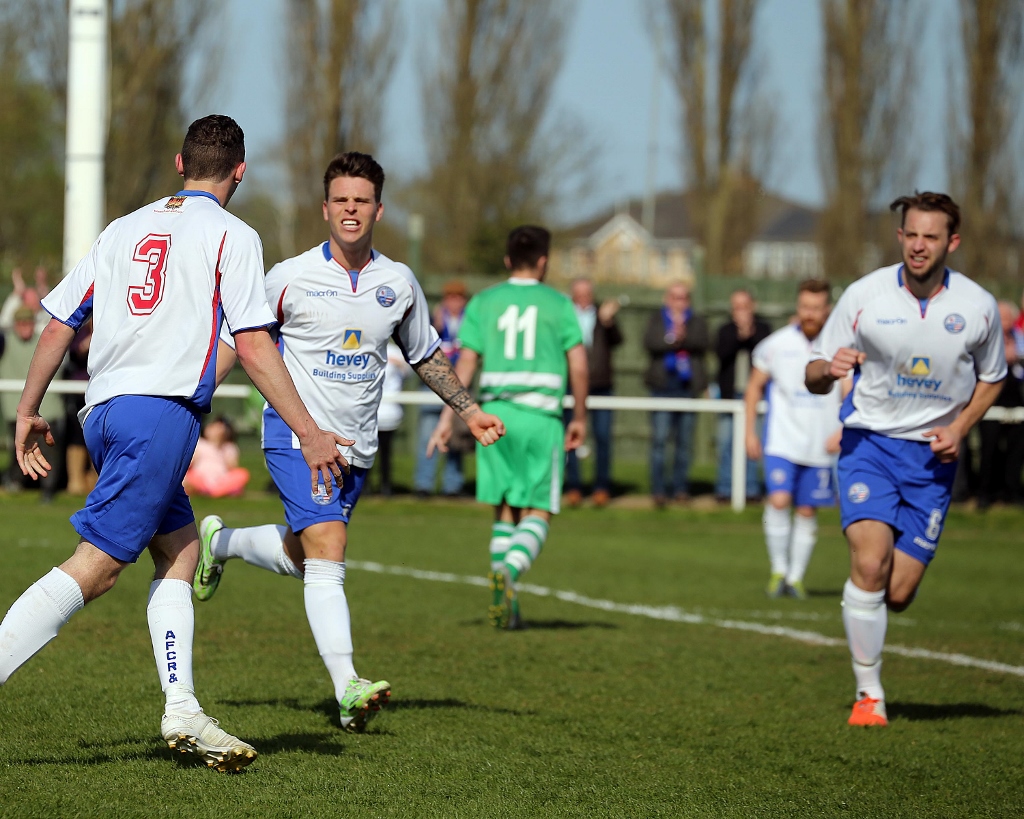 This represented a fairly comfortable win for the Diamonds once they found a sense of urgency and tempo at the start of the second half, though credit must go to Newport Pagnell for the way they diligently stuck at their task throughout the 90 minutes and proved to be a regular threat when attacking. The scenes at the end of the game were similar to those experienced at Northampton Spencer two years ago next month, and every single player who has ben involved in the championship winning side over the course of the season can be mightily proud of their efforts which has led to this bounteous reward. Further rewards could be forthcoming when the Diamonds play Potton United in the final of the UCL Knock Out Cup on Monday May 4, but attentions firstly turn to the final league game of the season at home to Cogenhoe United next Saturday where a victory would see Rushden break the 100 point mark for the UCL Premier season.