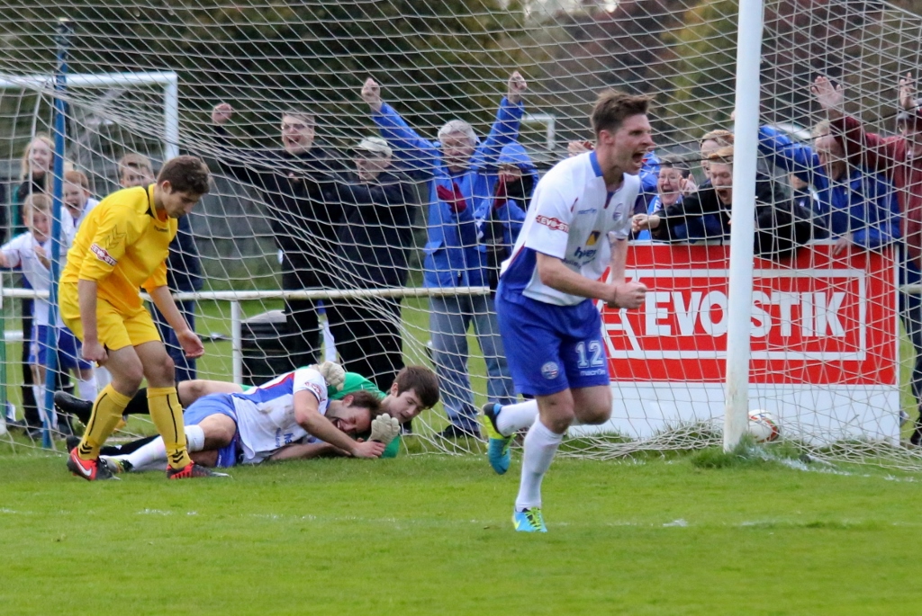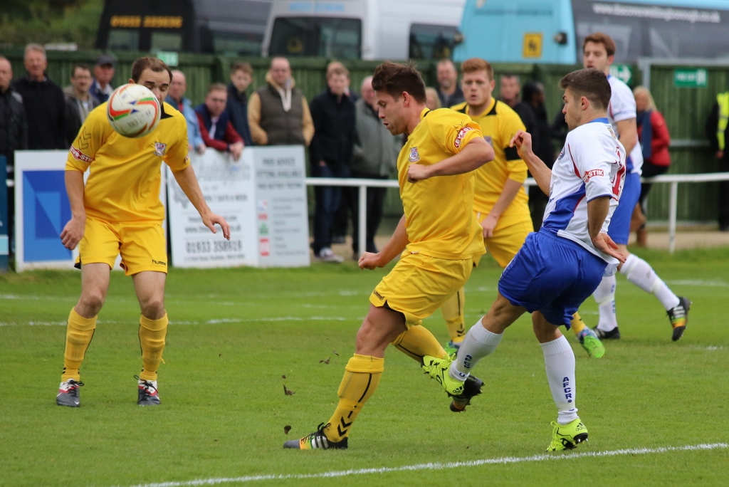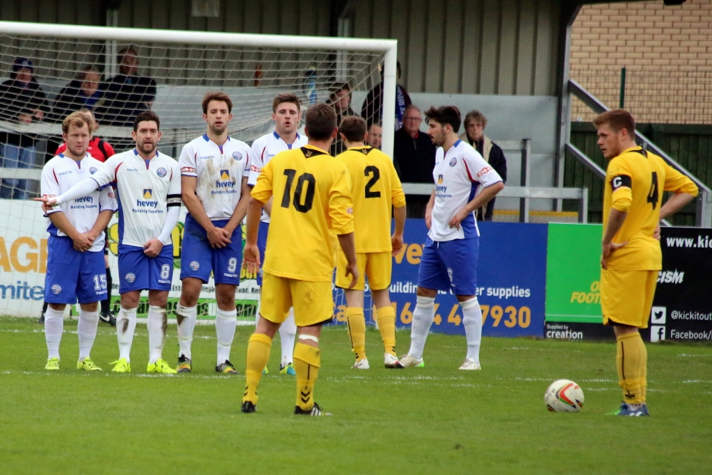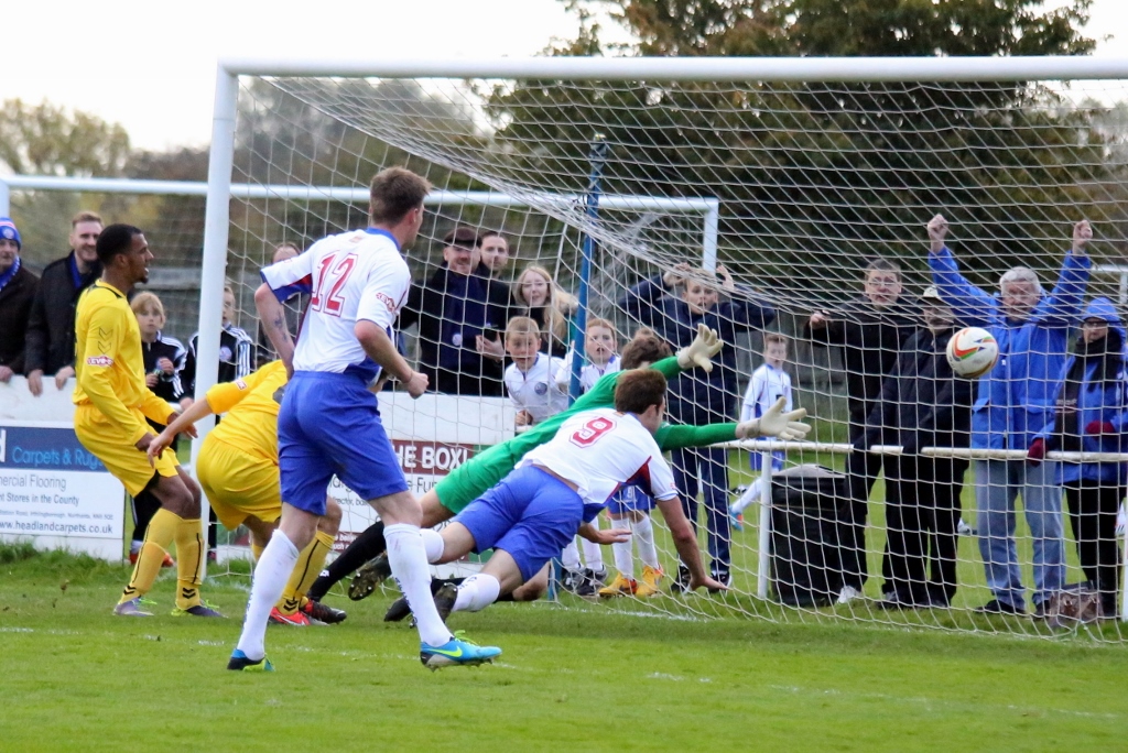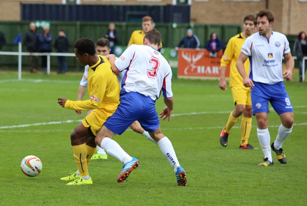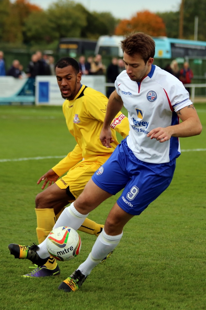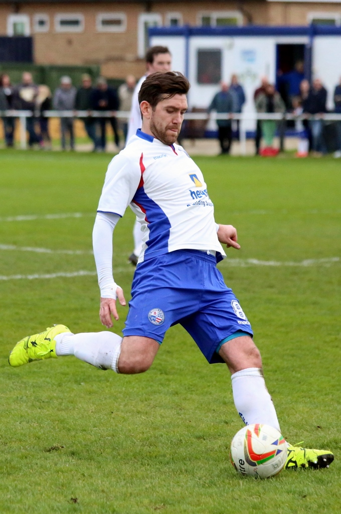 The game was now very much all to play for and the general play started to open up as both teams sensed the chance of a victory. Hoban almost restored the lead six minutes after the leveller as a ball forward broke into the Rushden number 11’s path when the ball was nicked away from Bunting, but his left-footed shot cleared the bar from 20 yards out.