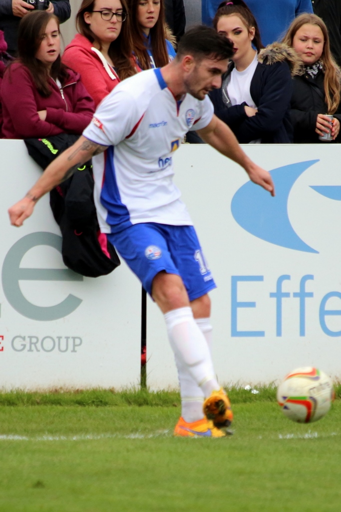 Hoban has shown so far this season his ability to turn a game with flashes of inspiration, and never has this been evidenced more perfectly than by him breaking the deadlock in the 39th minute. Lorraine was fouled 30 yards from goal as he advanced on the Scholars’ back four, but there seemed to be little danger with the distance between the kick and the goal. Cue Claudiu Hoban. He moved up to the ball and pinged a perfectly placed peach of a kick into the top corner of the goal in front of the Peter de Banke terrace, and the majority of the crowd erupted in elation and disbelief at what had just happened in front of them.