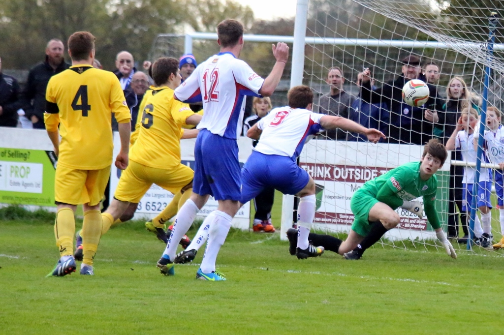 In between these opportunities for Rushden were a couple of moments of danger from Potters Bar, as Chris Doyle saw a near-post effort turned behind for a corner by Finlay and joint top goalscorer Dave Lawrence flashed a header over the bar after finding himself free from a right-wing corner. Midfielder Karim Assaoui also flashed a shot wide from the edge of the box as the visitors shaded the early exchanges.