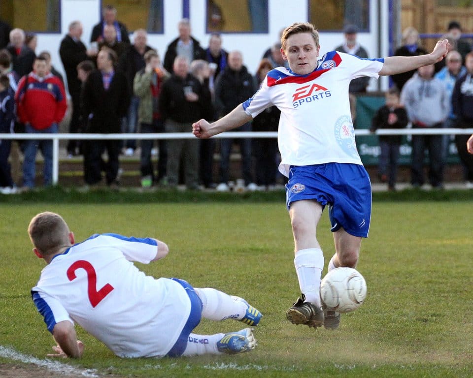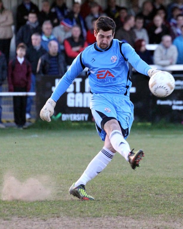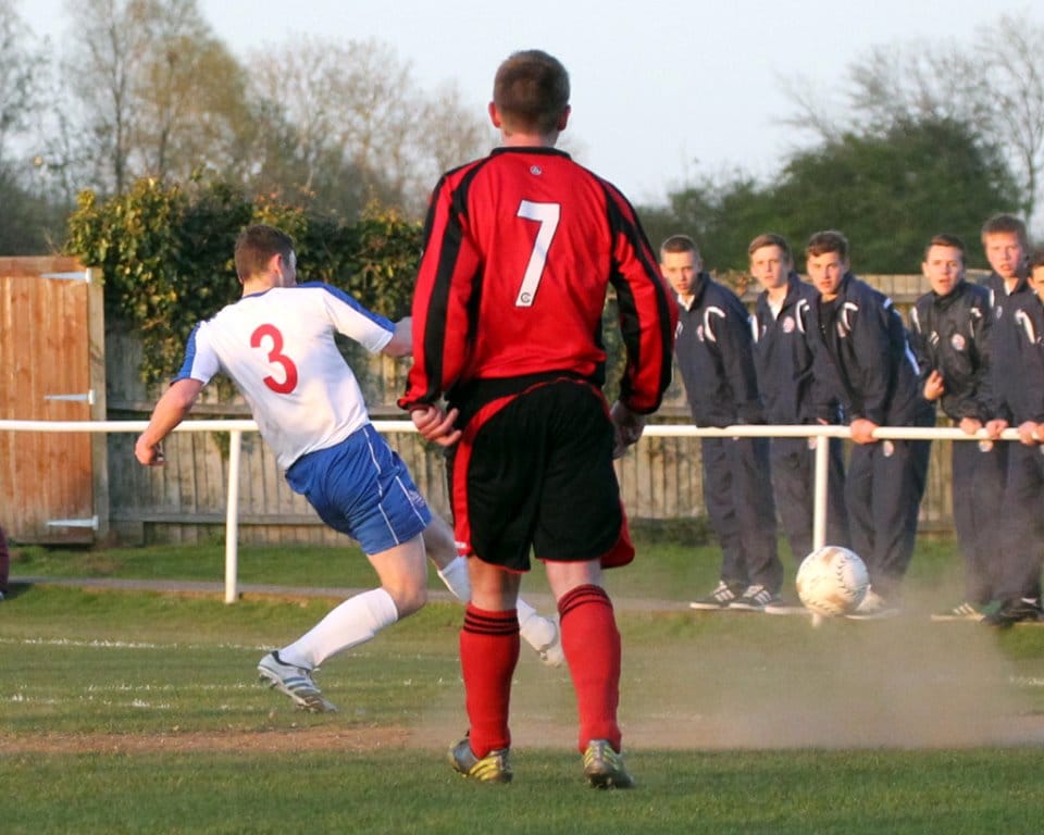 The Diamonds stuck with their 4-5-1 formation for the second period, and five minutes into the half they extended their lead. Aaron King showed good close control in the penalty area, before being tripped and seeing referee Lake award a penalty. After Alfie Taylor had missed the Diamonds last penalty, and with perhaps the obvious replacement Matt Gearing sitting on the bench, Jake Newman stepped up to take what he described as his first penalty in men’s football. The Diamonds striker made no mistake as he fired low into the right-hand side of goal.