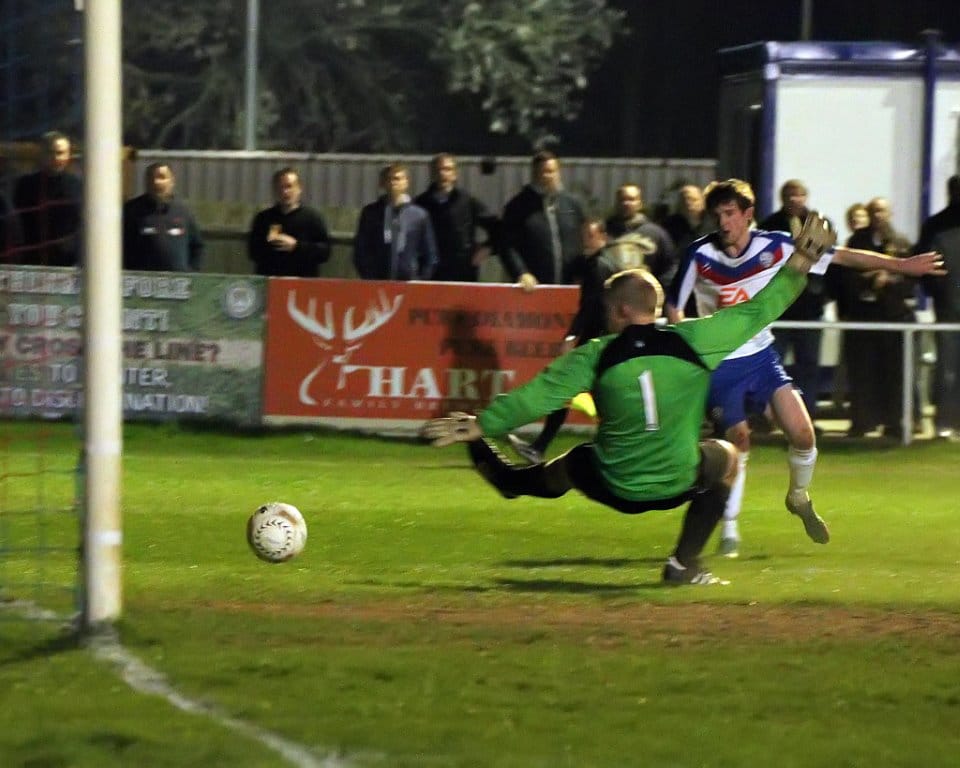 With the game now safe the Diamonds became rather sloppy at the back, and Tom Cross had his busiest time of the game, saving low at the left post and then tipping over a Purser shot, but between these two saves the Diamonds added a fourth goal when a slip in defence allowed Ben Morgan to break clear and fire home.