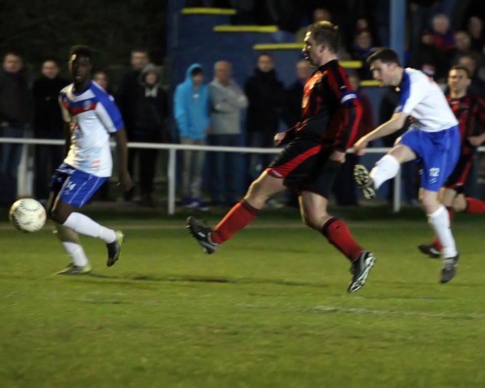 After 77 minutes Séan McBride was replaced by Matt Gearing, allowing a switch to the more usual 4-4-2 formation with Sam Brown getting forwards once more to see a shot blocked, and with the attacking threat stepped up the Diamonds netted their third after 85 minutes, when a mishit shot from Aaron King was deflected to Jack Wisniewski towards the right post and he fired home.