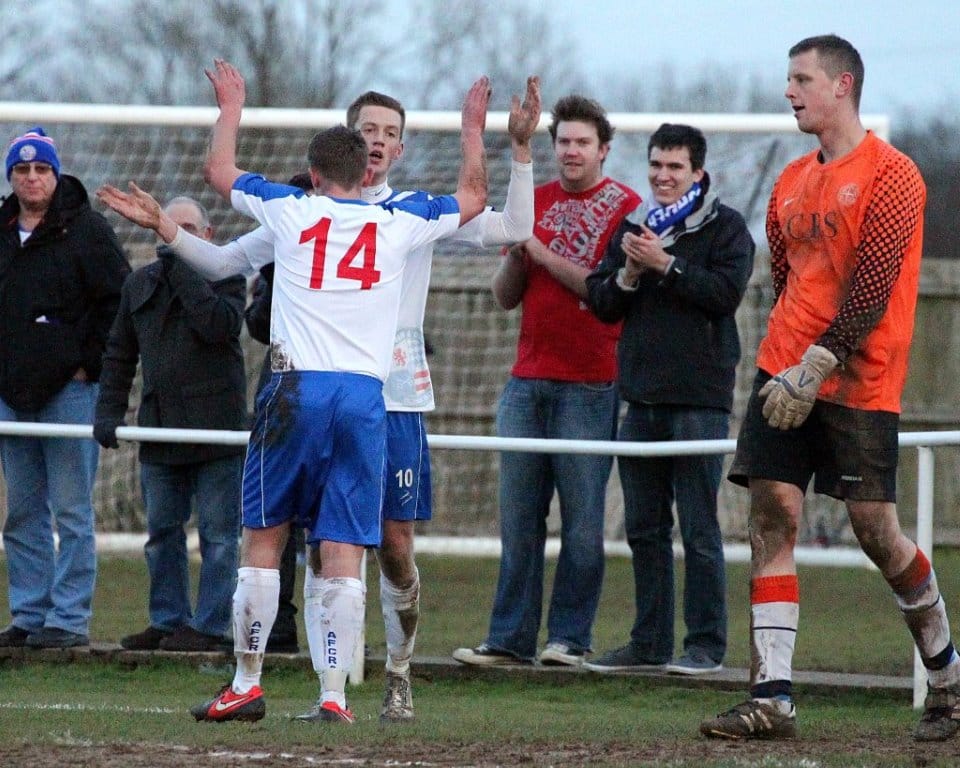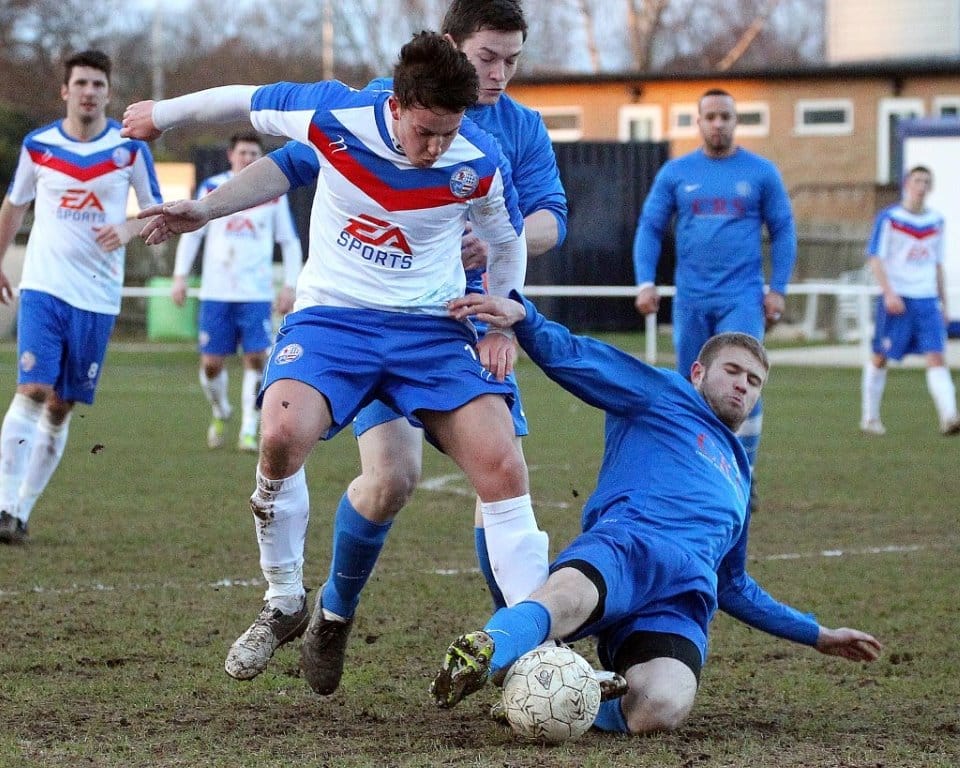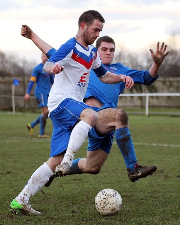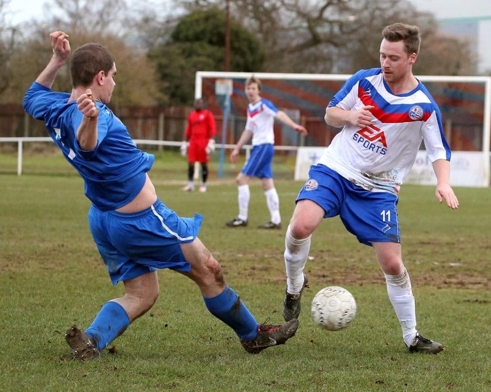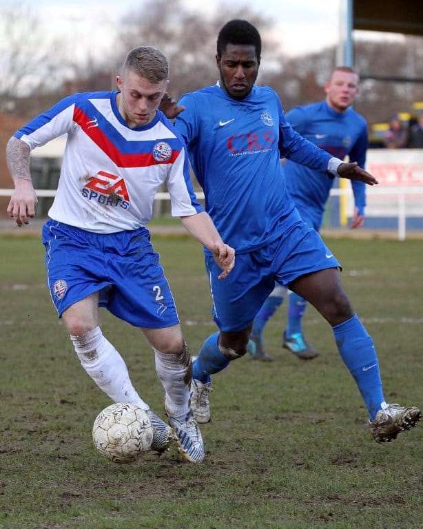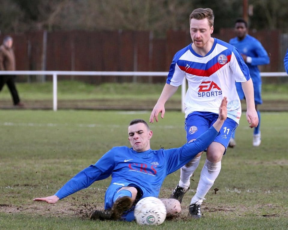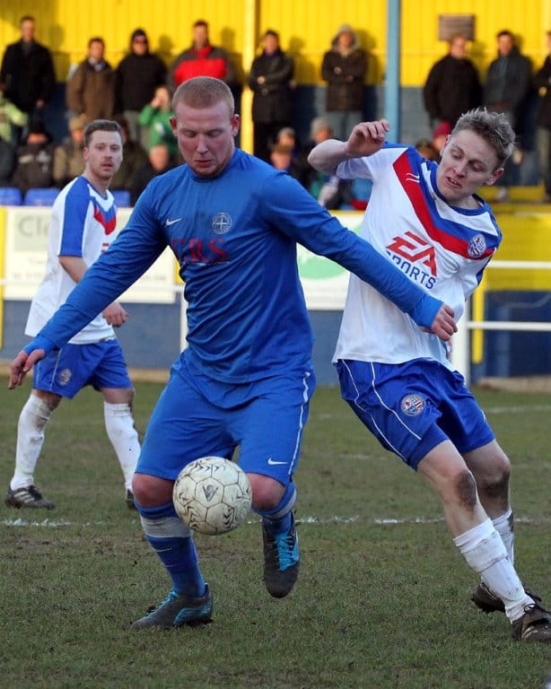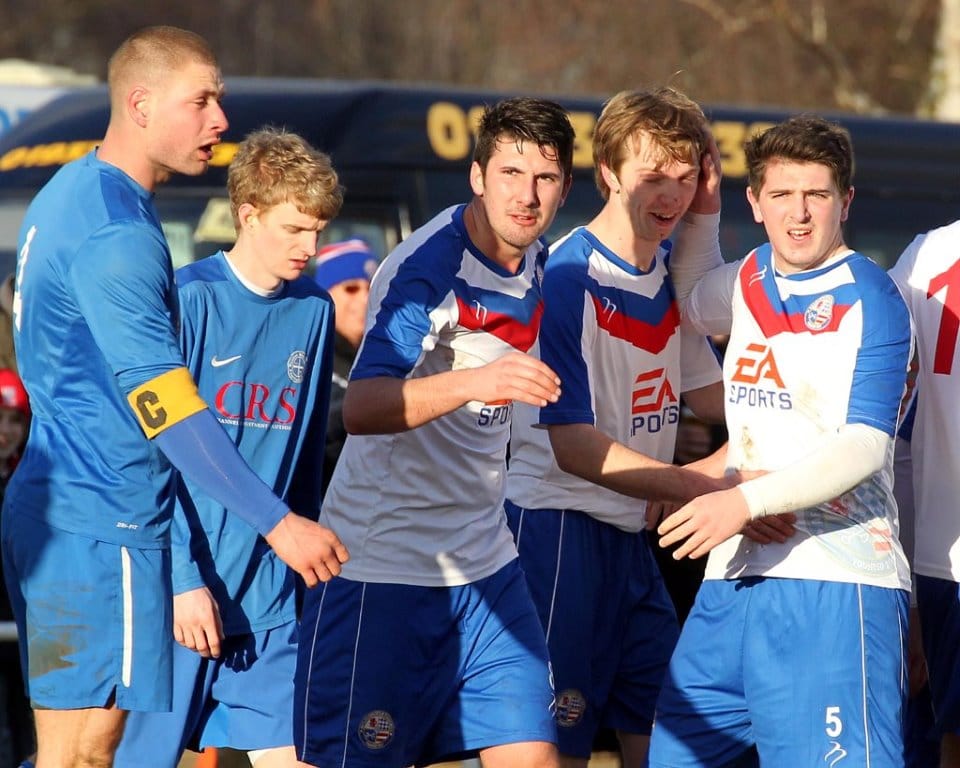 On a chilly afternoon the Diamonds kicked off towards the Peter De Banke terrace, facing a moderate winter breeze, and quickly established their dominance in the game. Matt Gearing was causing the visitors problems down the Diamonds left, and the returning Wisniewski ensured the Blue Cross defence was stretched to cover both flanks.