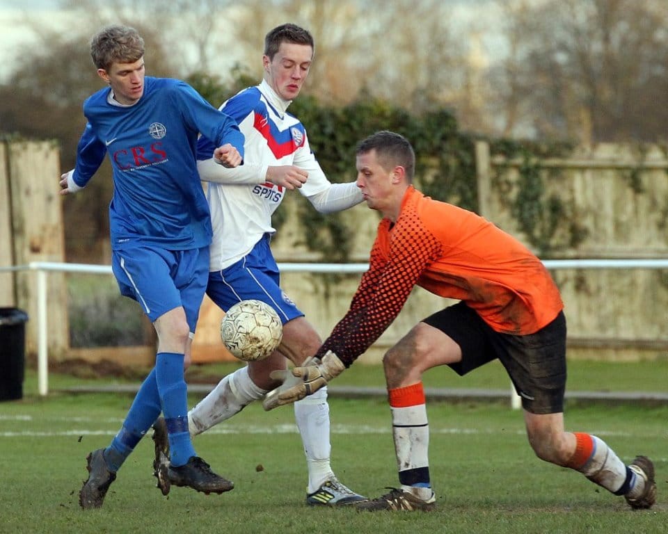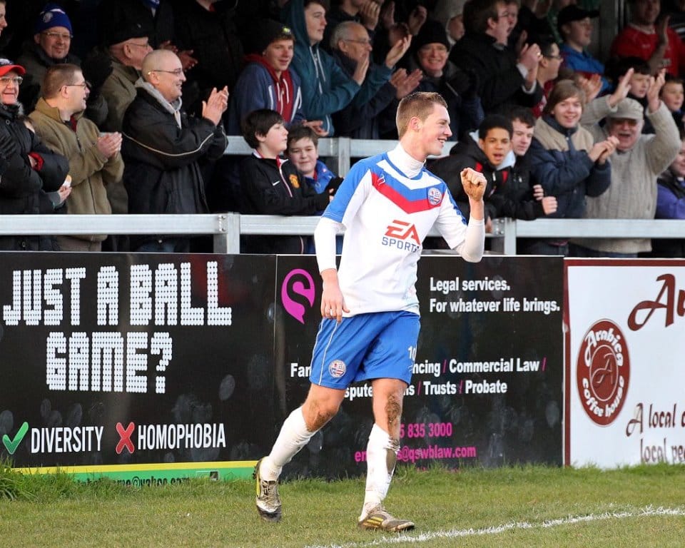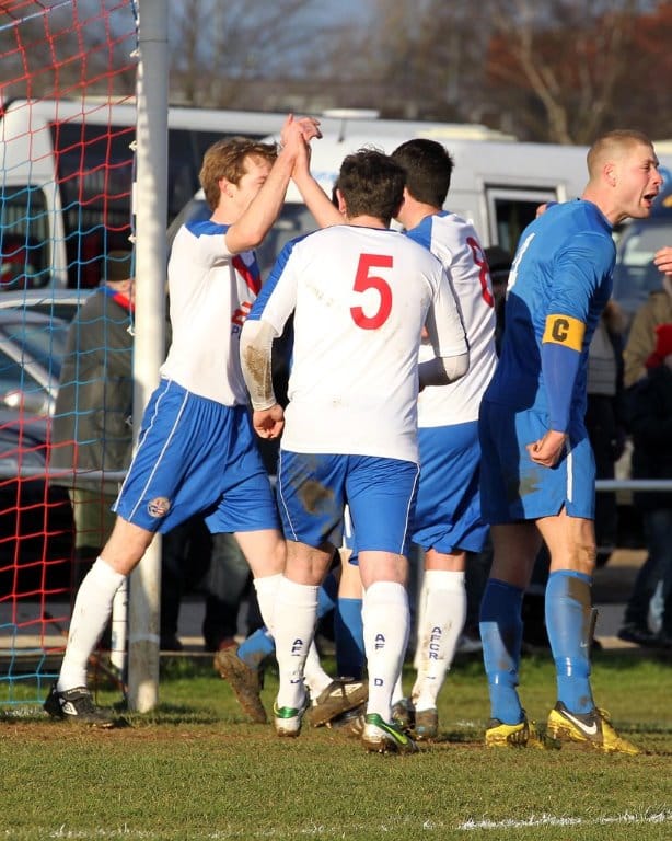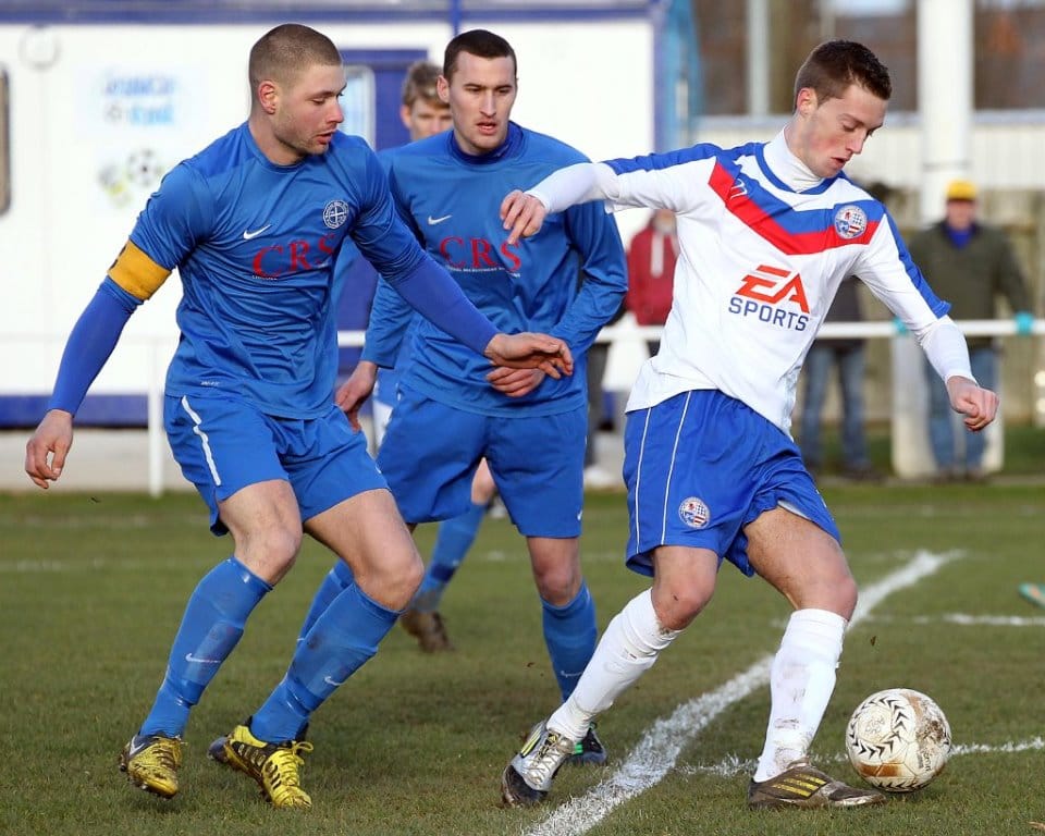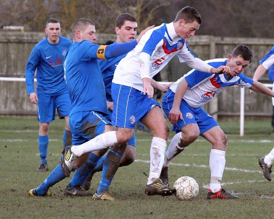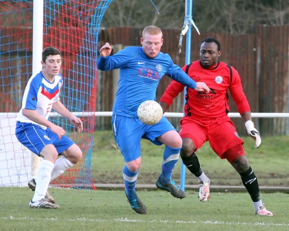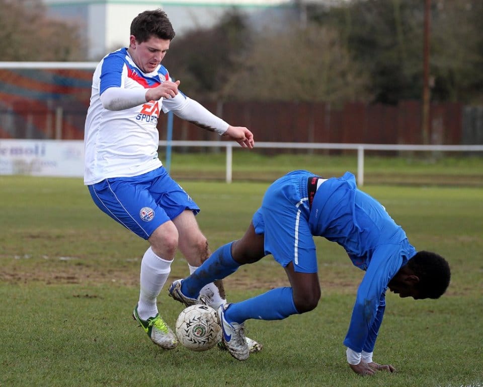 On a chilly afternoon the Diamonds kicked off towards the Peter De Banke terrace, facing a moderate winter breeze, and quickly established their dominance in the game. Matt Gearing was causing the visitors problems down the Diamonds left, and the returning Wisniewski ensured the Blue Cross defence was stretched to cover both flanks.