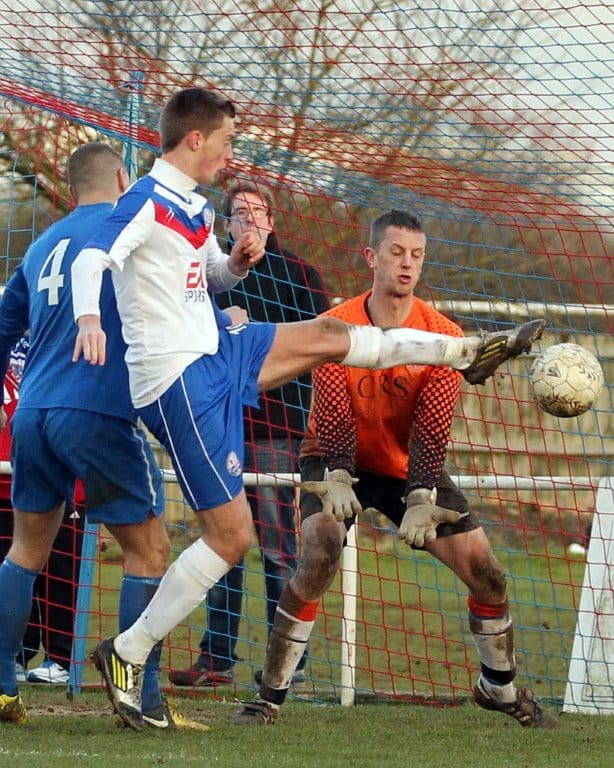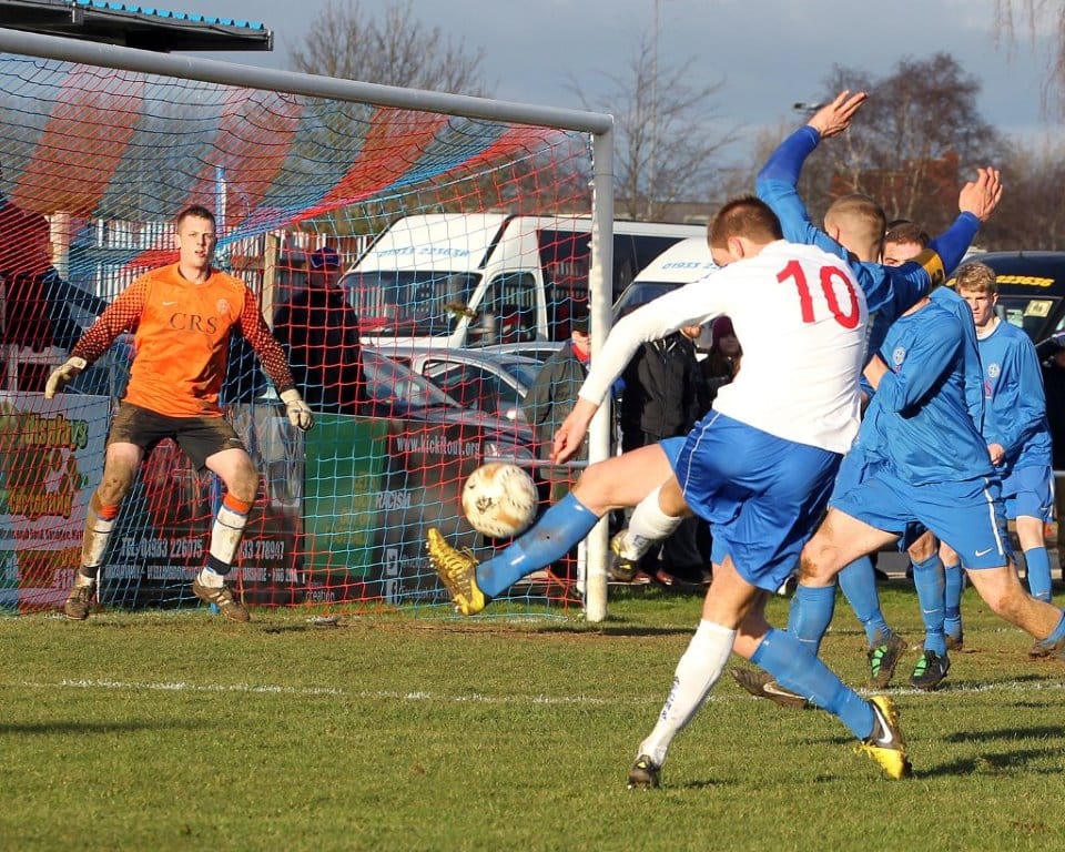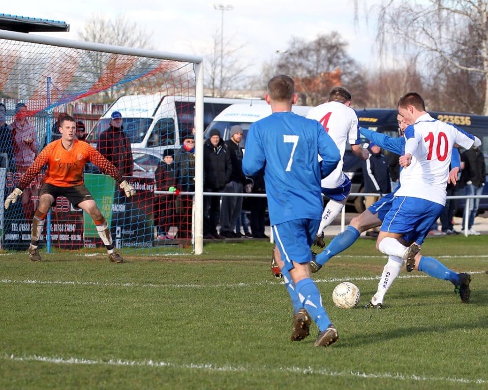 Elliot Dent joined the action and quickly saw an effort blocked by Bradley Cotton, but after 77 minutes he opened his account for the club in a rather bizarre fashion, receiving the ball from Alex Deakin and hitting a shot which looked destined to be easily gathered by Hankey, but it somehow squirmed through the keeper’s grasp and rolled through his legs and into the net to make the score 4-0.