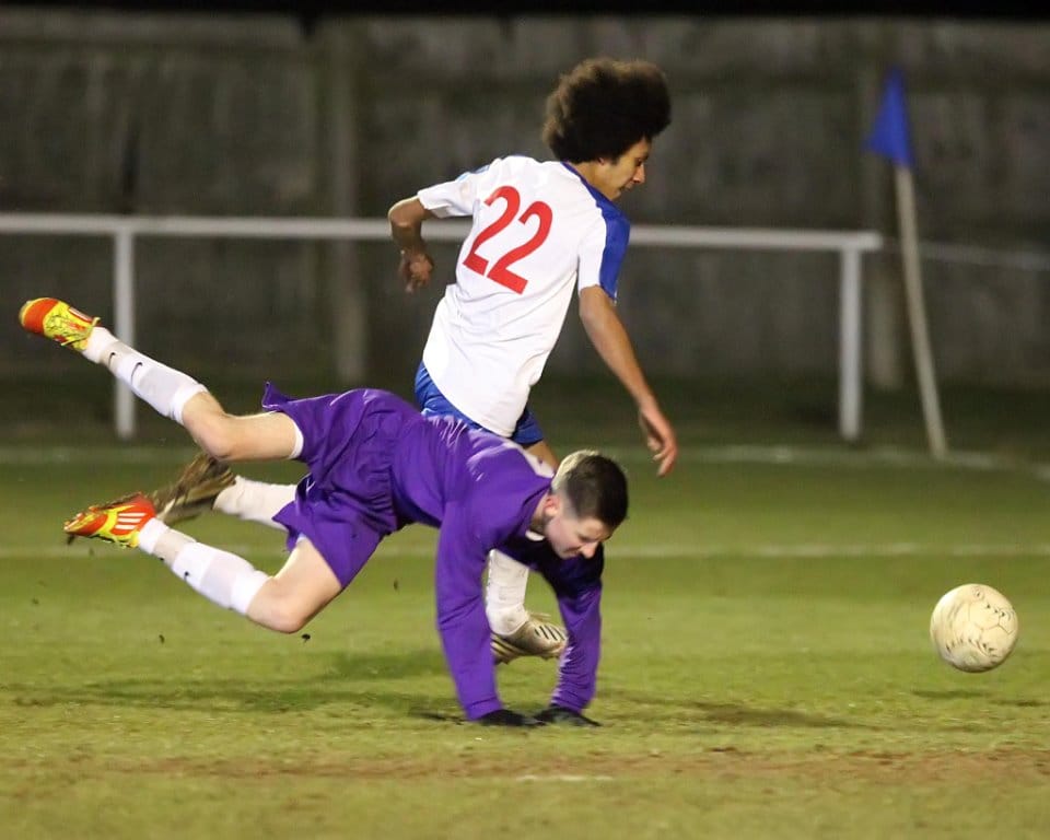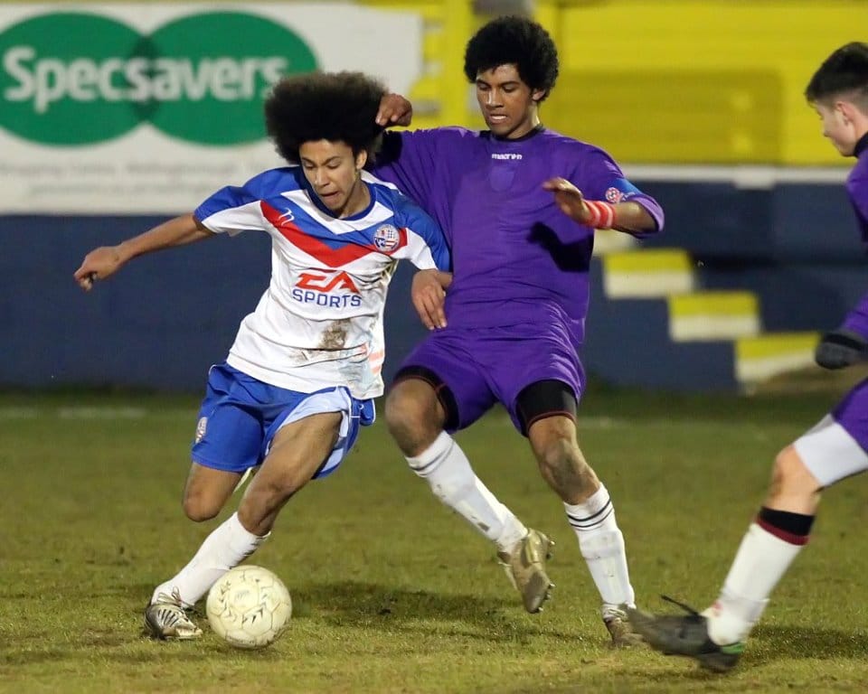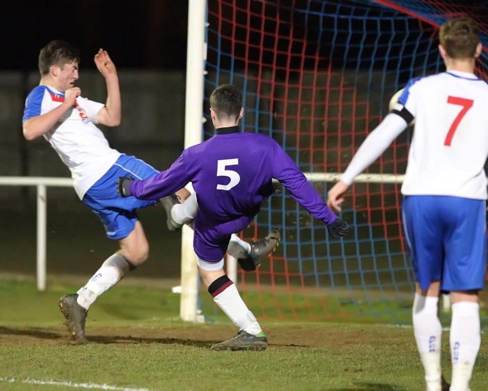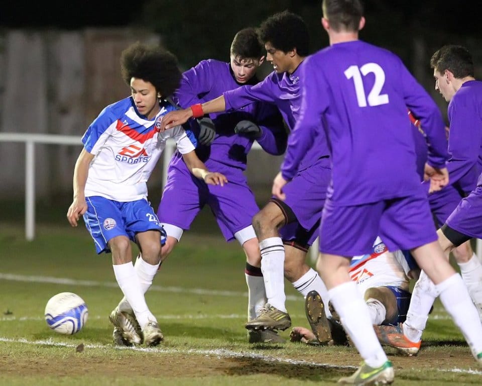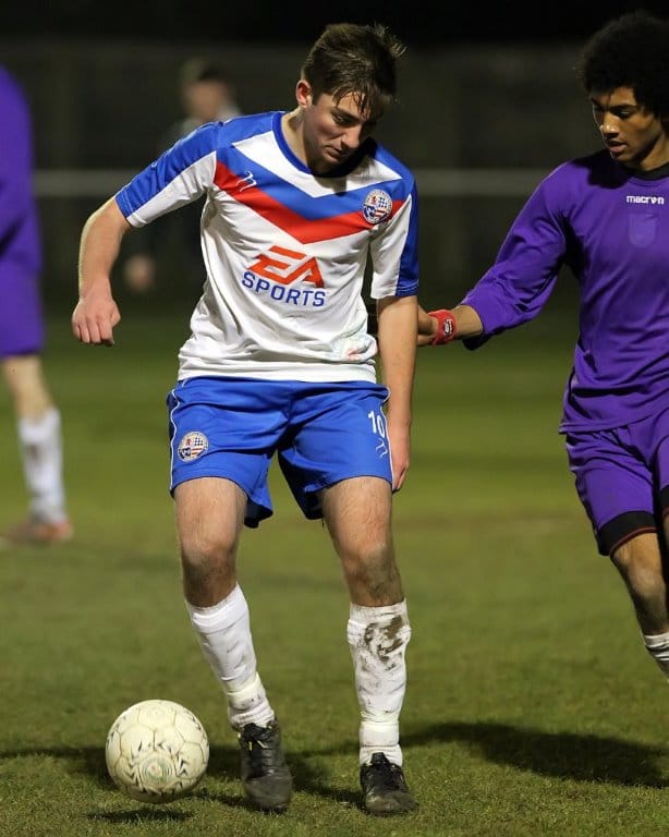AFC Rushden & Diamonds opened up a huge 16 point lead at the top of the Northants Senior Youth League Western Division table following an entertaining victory over second placed Daventry Town. As well as the league’s top two sides pitting their wits against one another, the two top goalscorers also went head to head, as the Diamonds’ Jake Reynolds went up against Daventry’s Taylor Orosz, both of whom started the game having hit the back of the net 15 times this season.