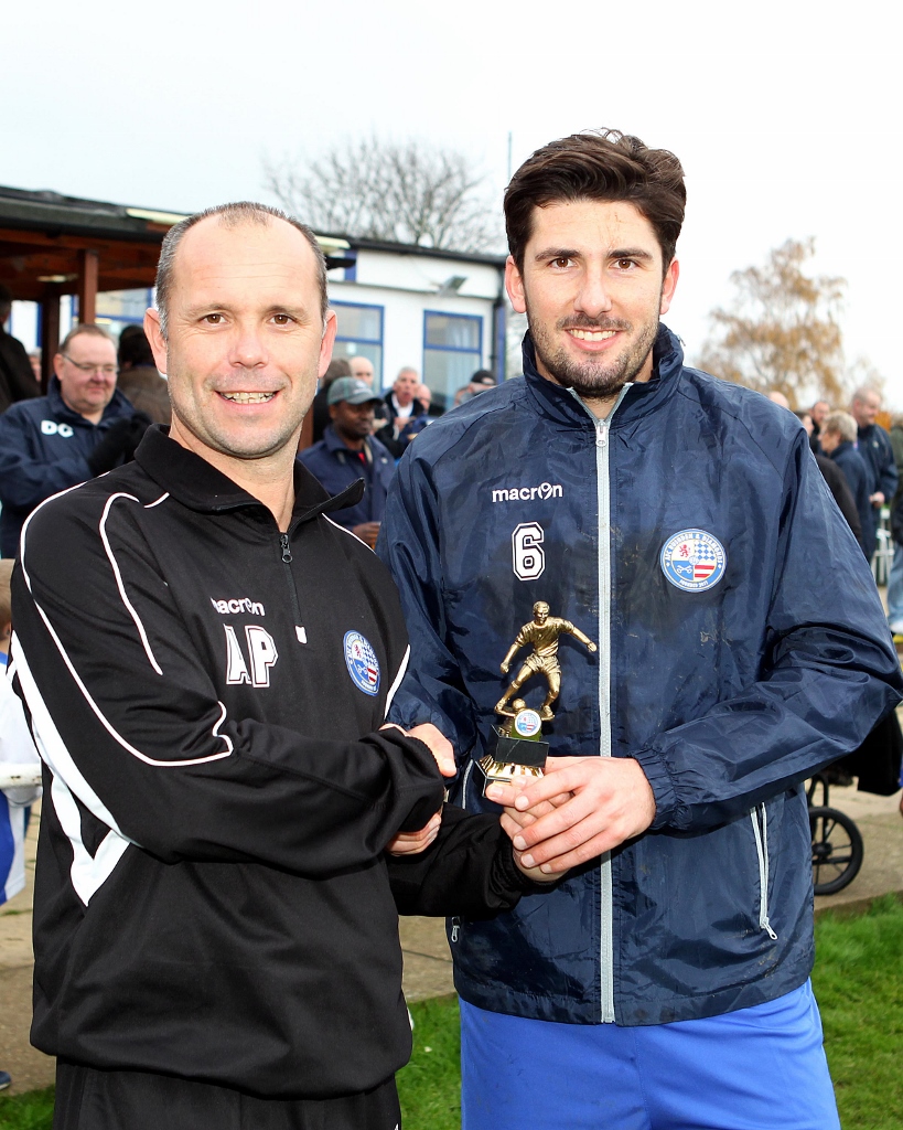 He has played a further 36 games this season, picking up a further player of the month award in October 2014, to complete his Diamonds’ century. Speaking after the game at Desborough, Brad highlighted two games in the hundred that had been the most memorable – the FA Cup win against Step 3 Cambridge City and the game against Northampton Spencer where the team clinched promotion to Step 5.