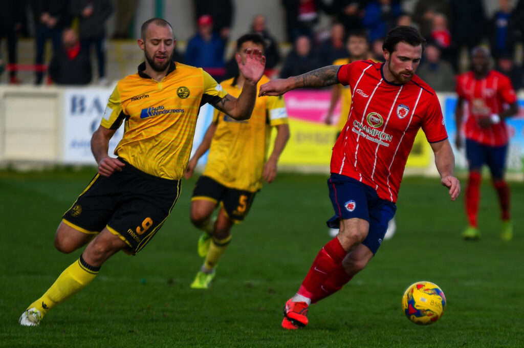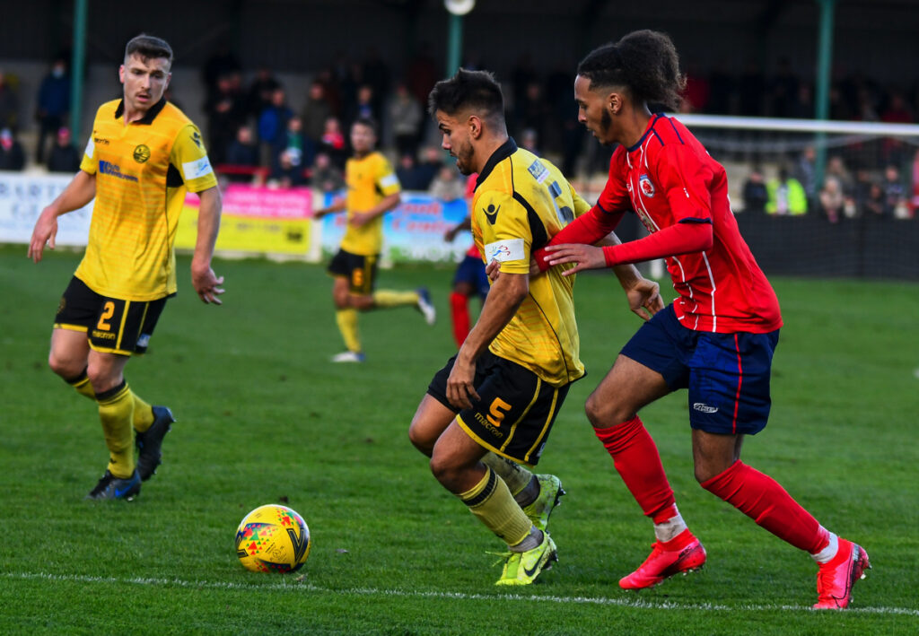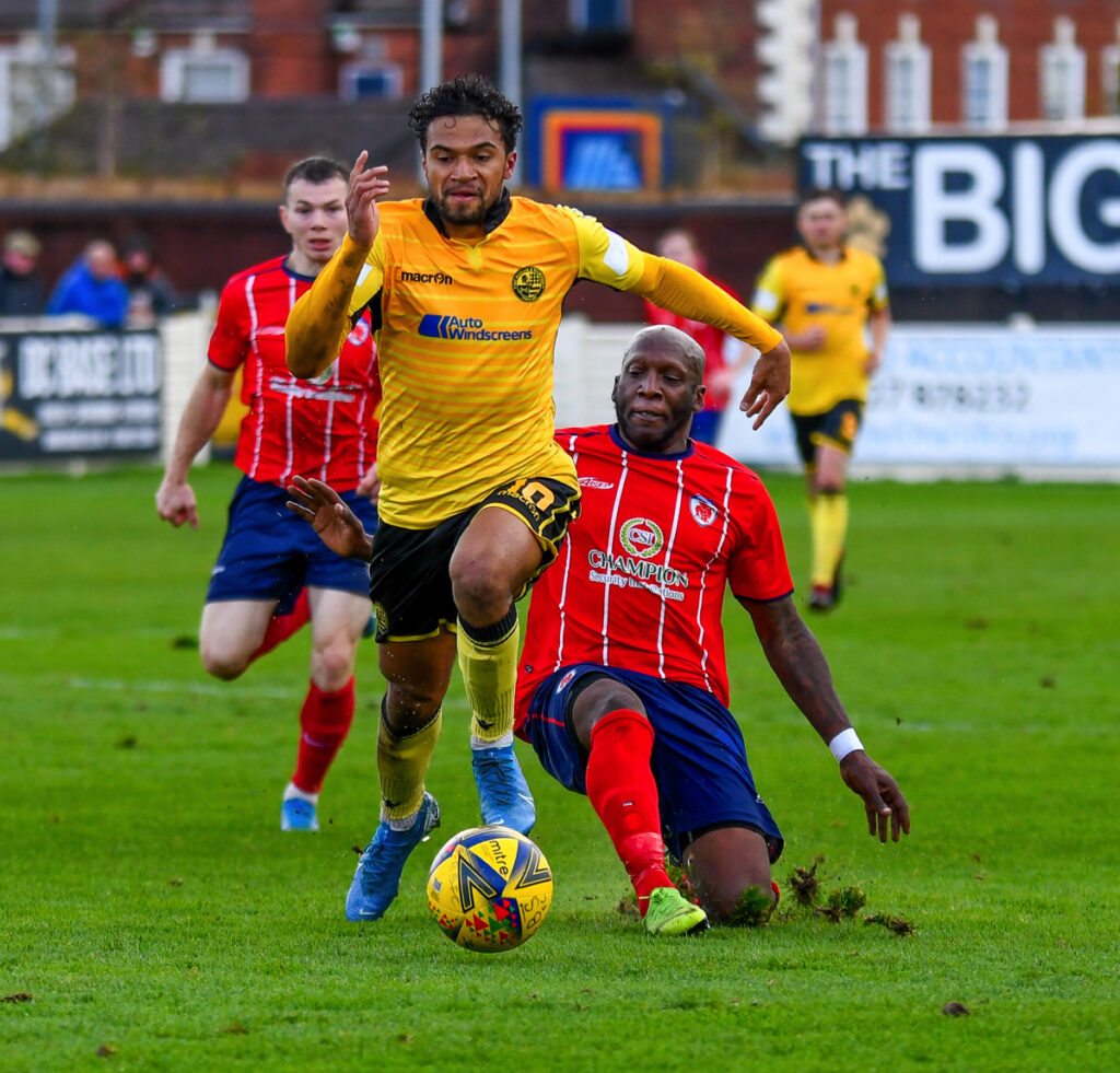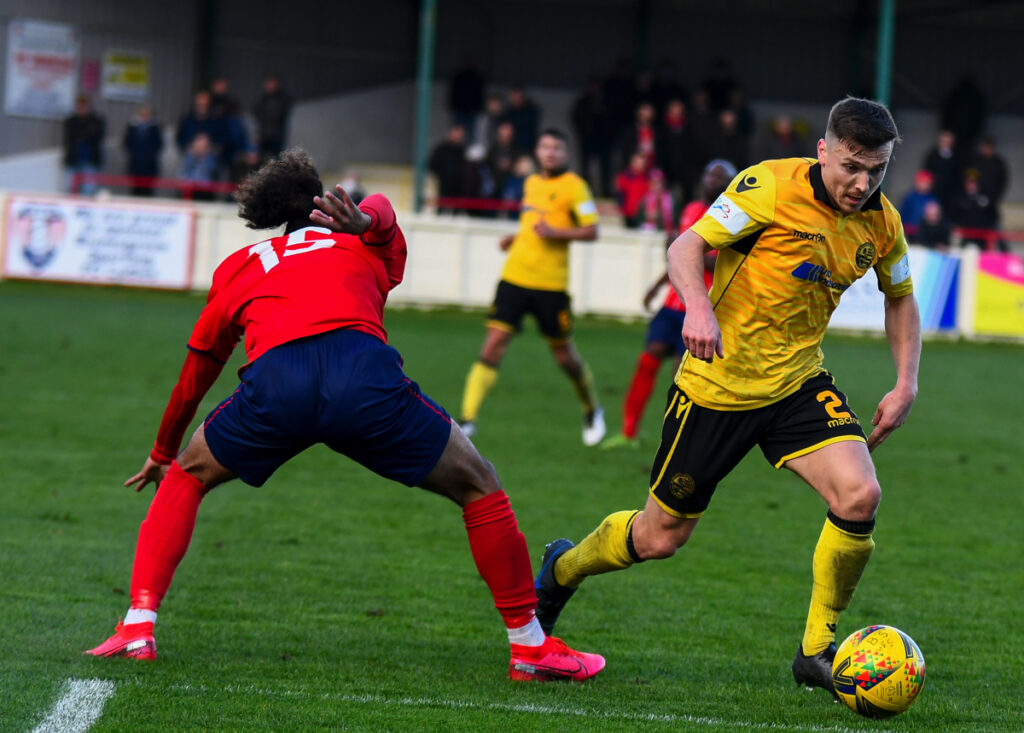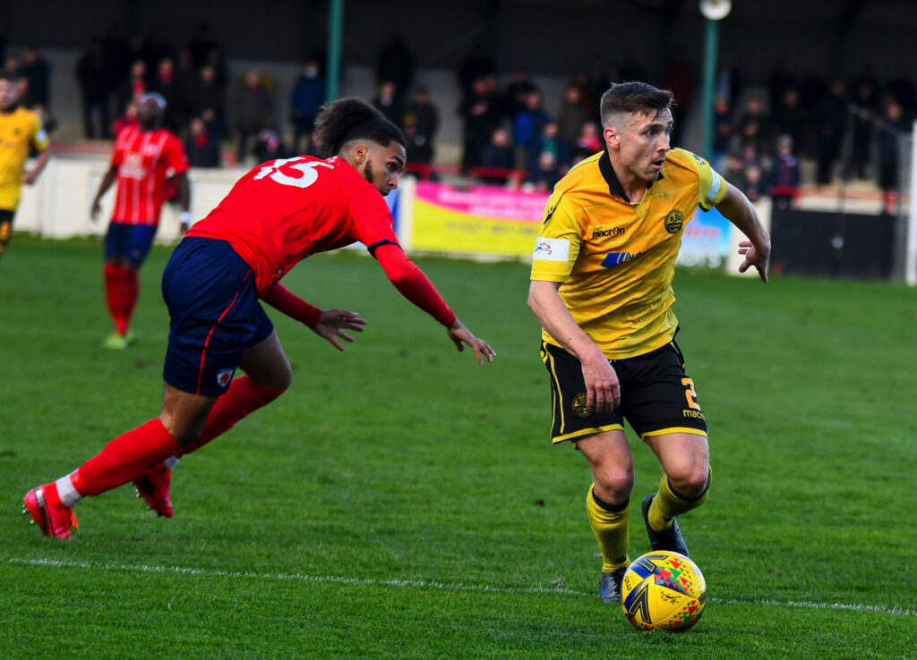 Luke Fairlamb carried on his lively attacking display in the second half with an early run and shot just wide of Platt’s goal.