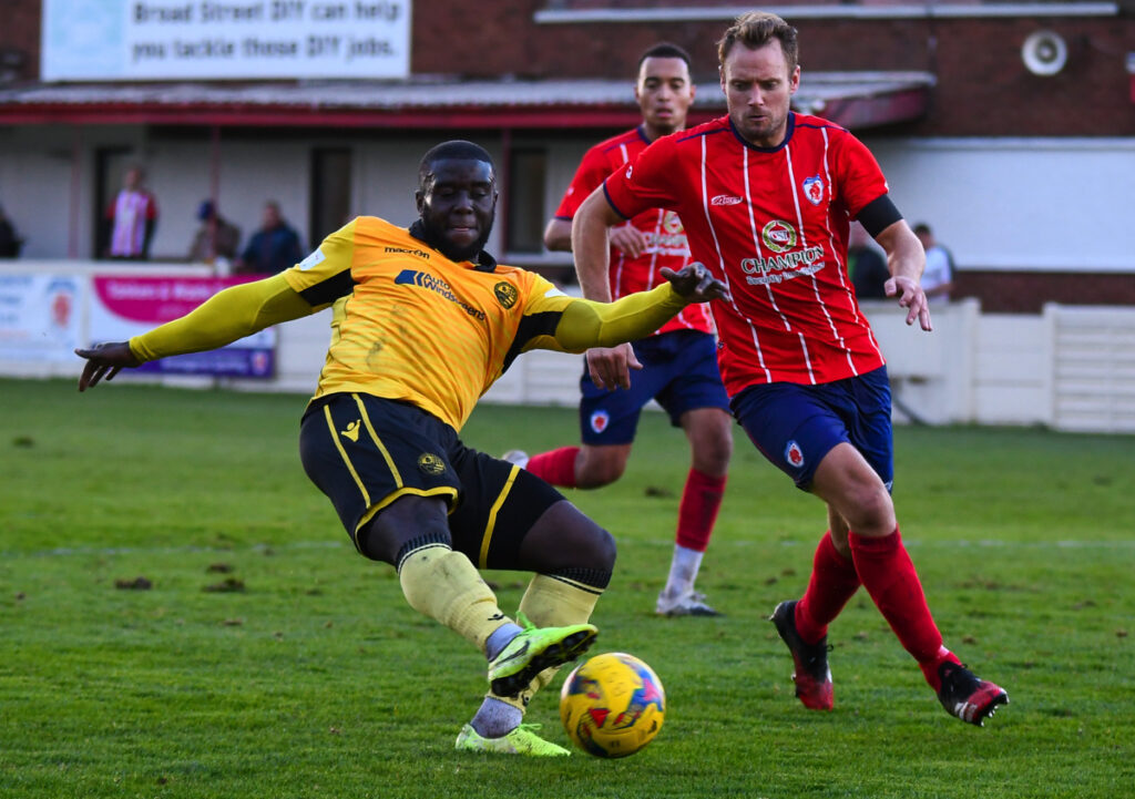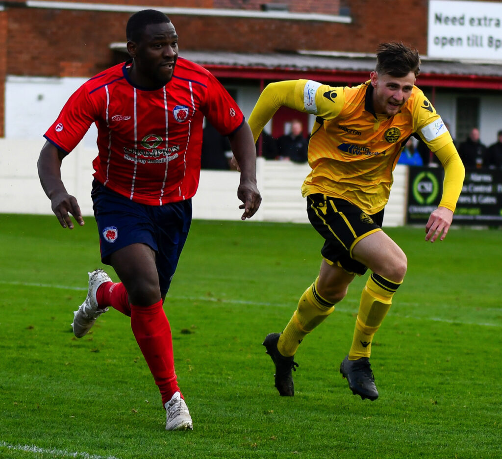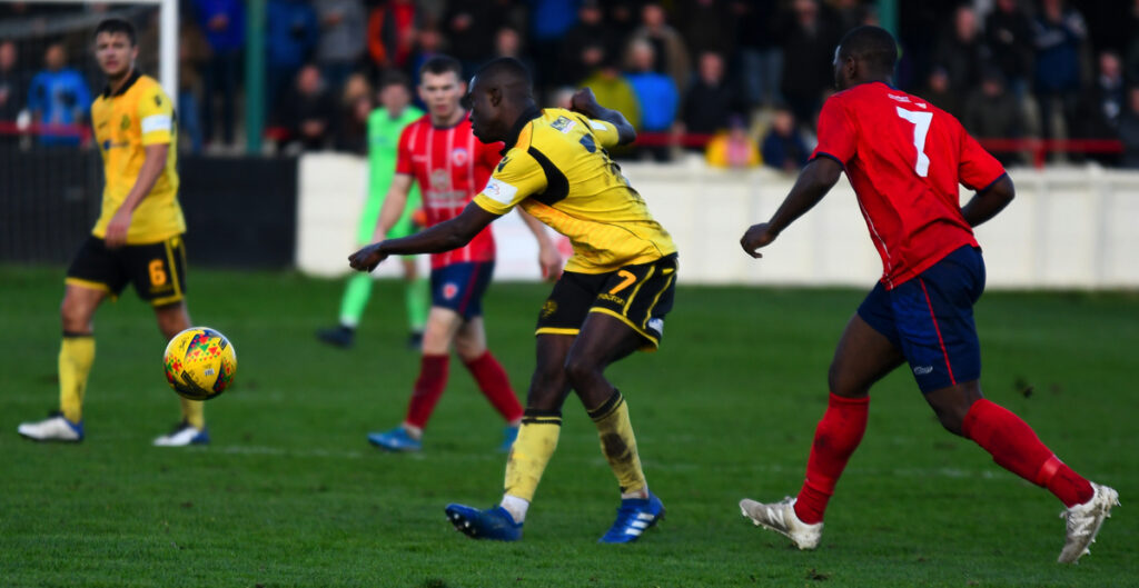 Bromsrgrove were the more incisive early on and created the opening goal in good style on 14 minutes. Chris Lait hit another dangerous cross-shot along the 6 yard line allowing the sliding Michael Taylor to prod home.