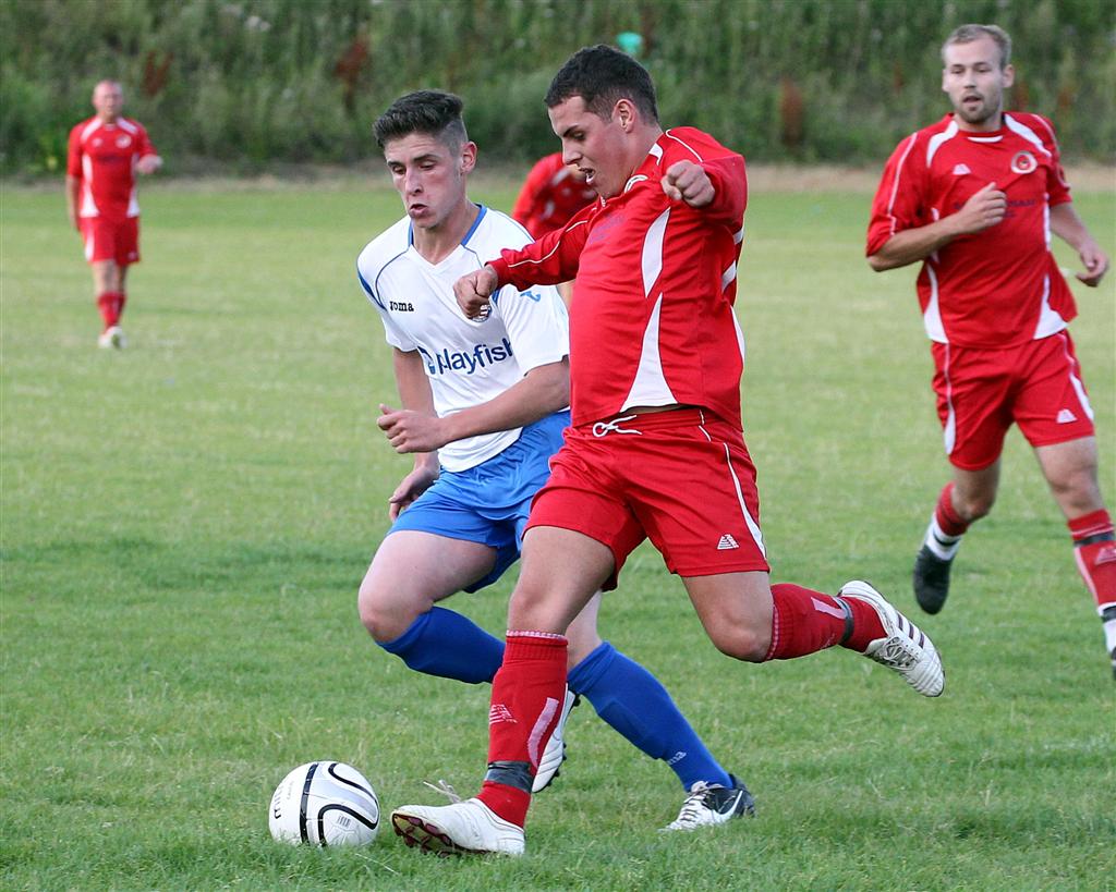With the Diamonds 2-1 ahead their management team of Mark Walsh and Dean Thomas made a series of changes, and then had to watch Robins’ striker Danny Simpson net three goals to put the home side 4-2 ahead. The Robins’ keeper then made a good save from Manny Soetan, and saw Soetan fire another good chance over the bar before another excellent strike, this time from 25 yards by Matthew Brady, gave the Diamonds some hope with one minute left in the gathering gloom, but Simpson netted his fourth goal and the Robins fifth less than a minute later.