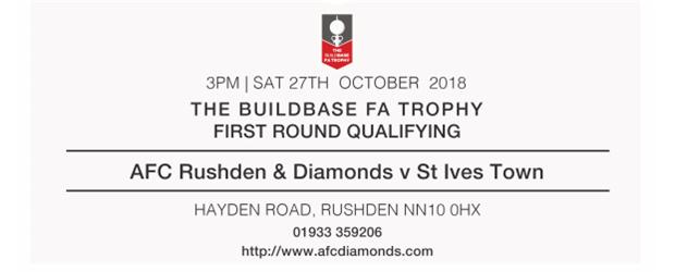 AFC Rushden & Diamonds host St Ives Town in the Buildbase FA Trophy on Saturday at Hayden Rd (Ko 3pm).