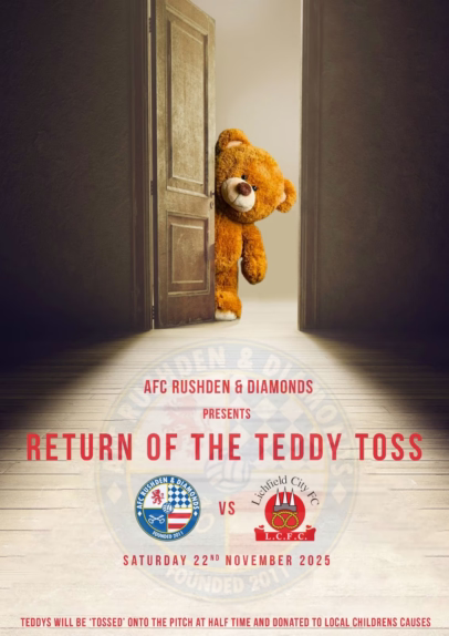 On Saturday, it’s the return of the Teddy Toss (preferably new) & a first-ever meeting with Lichfield City FC.