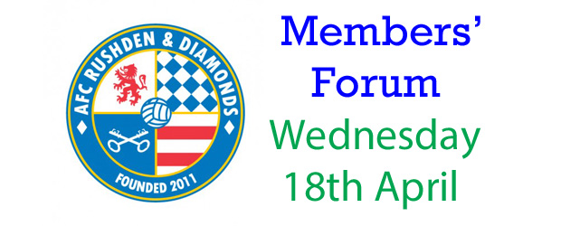 AFC Rushden & Diamonds are pleased to announce that the next Members’ Forum will be held on Wednesday 18th April 2018 at the Windmill Club in Rushden, starting at 7:30pm.