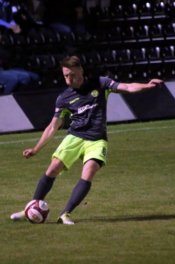 With the bar still shaking after Fairlamb’s ferocious shot, referee Robbie Dadley blew to begin the second half, with Finlay replacing Heath being Andy Peak’s only substitution. The first shot on target came after 53 minutes, with Ben Farrell collecting from Shariff and driving the ball towards Bastock’s near post with a clean first-time shot, but the experienced Corby goalkeeper was on hand to turn the ball away for corner.